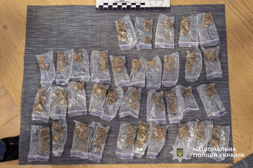 Викрили наркозбувача оперативники Святошинського управління поліції, який розповсюджував заборонені речовини шляхом закладок. Правоохоронці вилучили у порушника пакунок з «товаром» та розшукали й вилучили ще 44 закладки, які він встиг зробити. Під час санкціонованого обшуку за місцем проживання збувача засоби для фасування, гроші та 35 пакетів з канабісом, підготовлені до збуту.