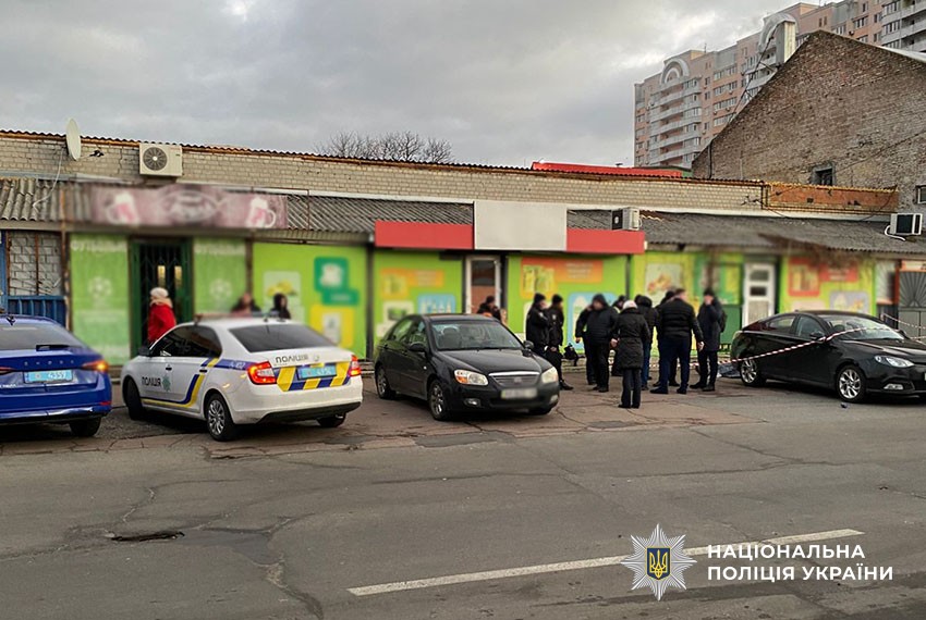 Повідомлення про стрільбу на вулиці Бориспільській надійшло від перехожої. За вказаною адресою прибули слідчо-оперативні групи Головного та районного управлінь поліції, патрульні поліцейські.