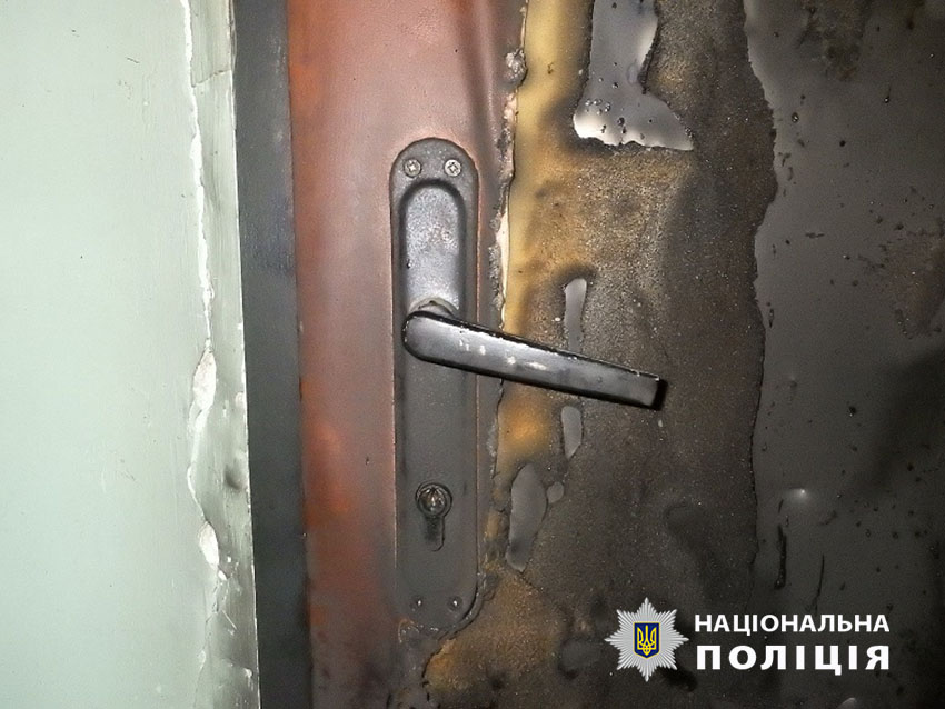 До Деснянського управління поліції надійшло повідомлення про загоряння вхідних дверей в одній з квартир багатоповерхівки. По прибуттю на місце події поліцейські зафіксували пошкодження та опитали свідків, потерпілих від пожежі.