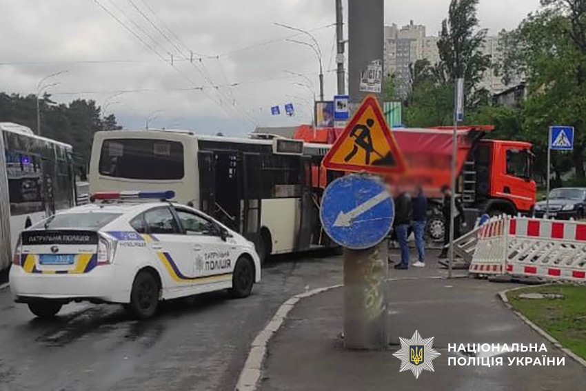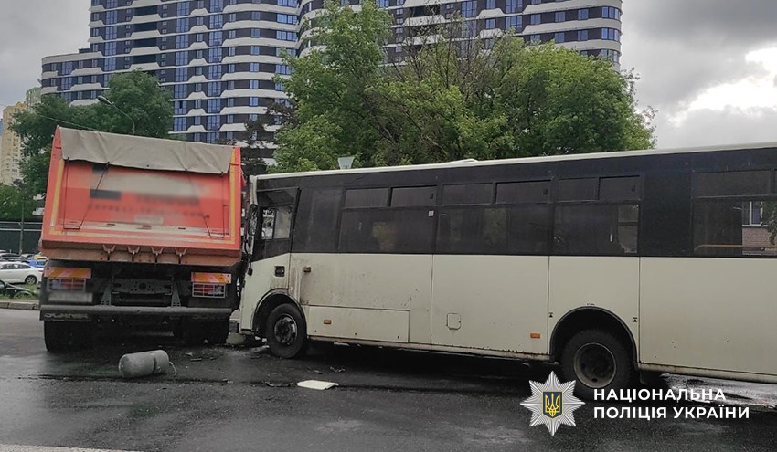 Автопригода трапилась сьогодні близько о 8:00 у Дніпровському районі столиці. За попередньою інформацією, водій камазу, рухаючись по проспекту Георгія Нарбута, виконував маневр повороту з другої смуги, внаслідок чого відбулось зіткнення з мікроавтобусом.