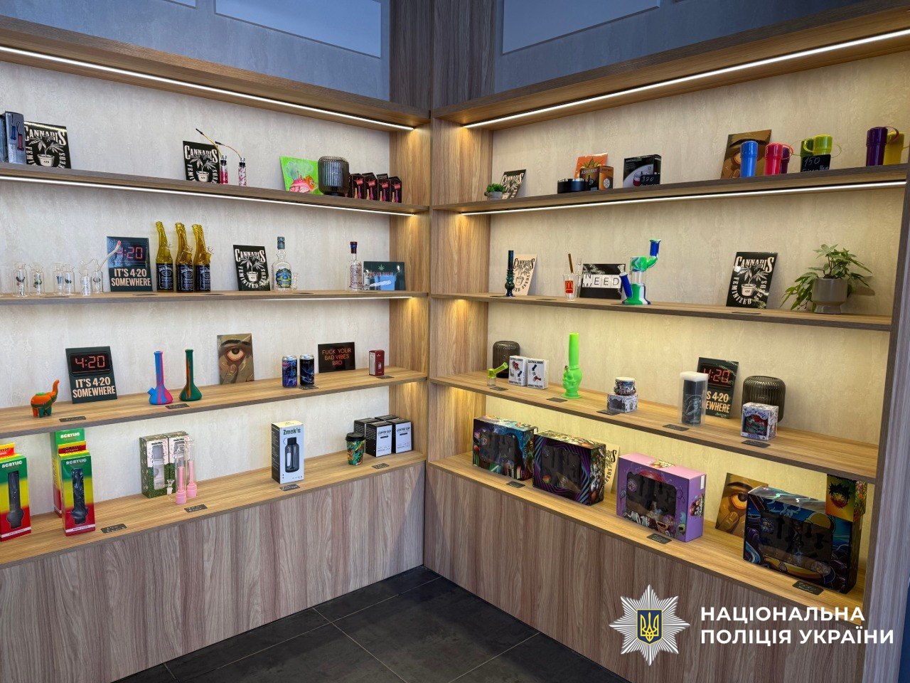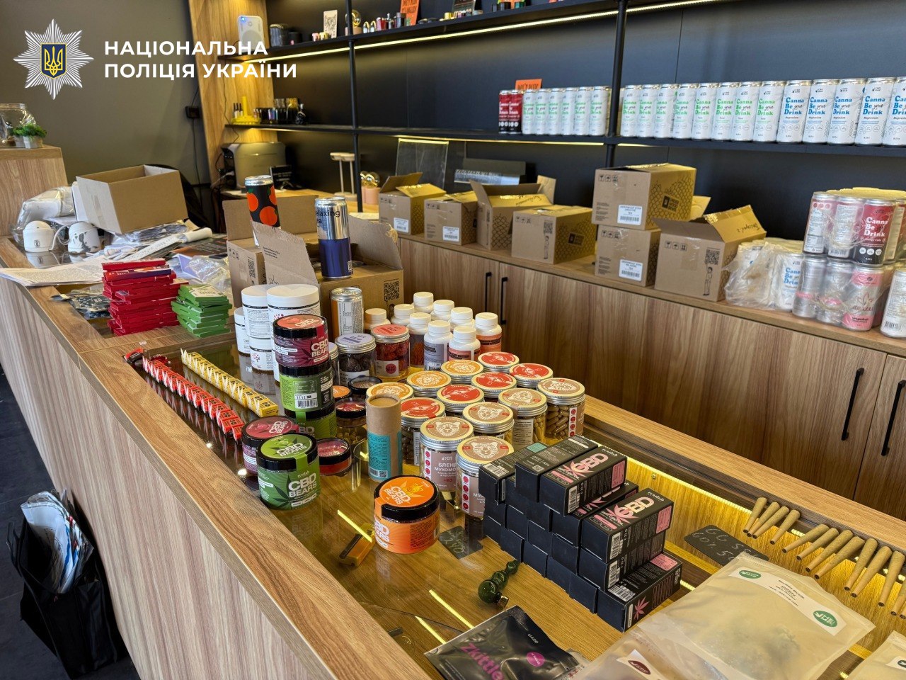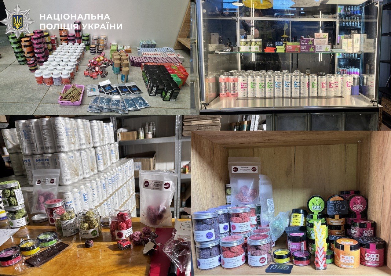 За результатами обшуків було вилучено продукцію на суму близько 1,5 мільйона гривень, серед якої – напої, шоколад, цукерки та цигарки. Експертиза підтвердила, що в напоях, які позиціонувалися як безалкогольні, міститься дельта-9-тетрагідроканабінол – психоактивний компонент канабісу, а в цигарках – психотроп ADB-4en-PINACA.