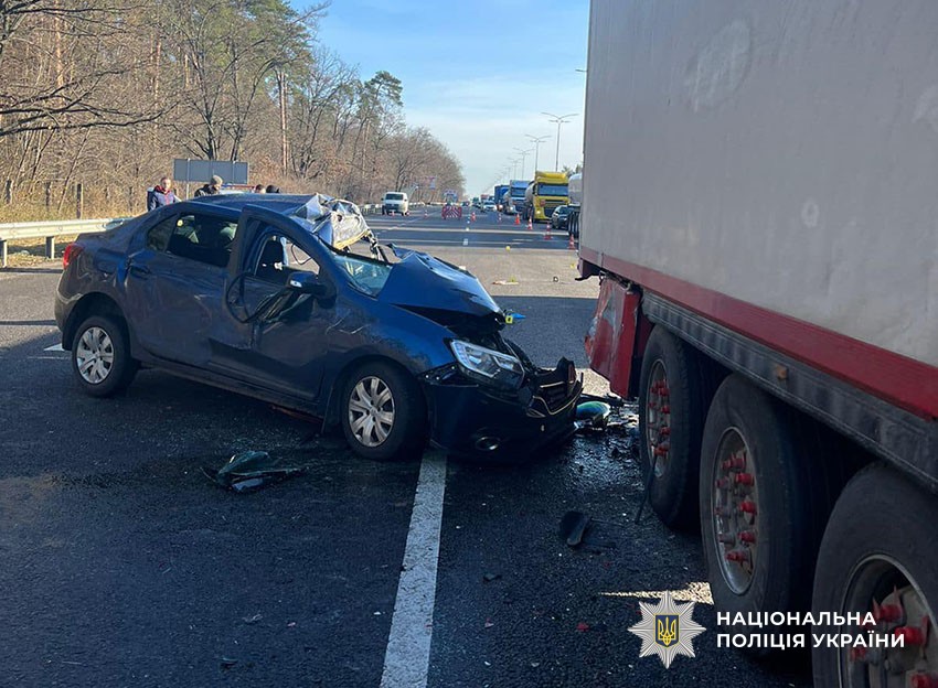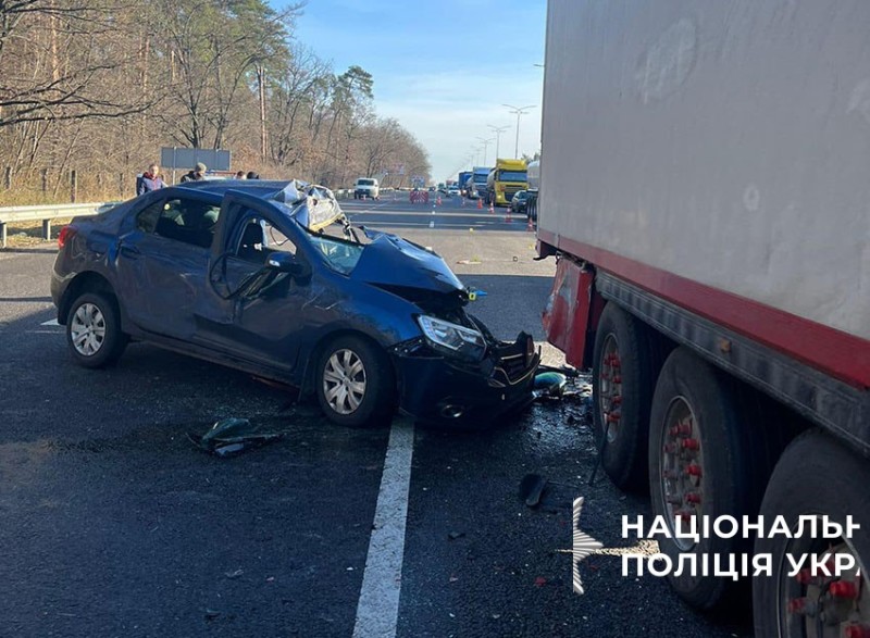 Працівники поліції попередньо встановили, що керманич автомобіля «Рено» вʼїхав у задню частину напівпричепа вантажівки «Сканія». Водій великогабаритного транспорту зупинився у третій смузі для руху з пʼяти наявних, виставив знак аварійної зупинки та очікував патрульних поліцейських для оформлення автопригоди з іншою автівкою.