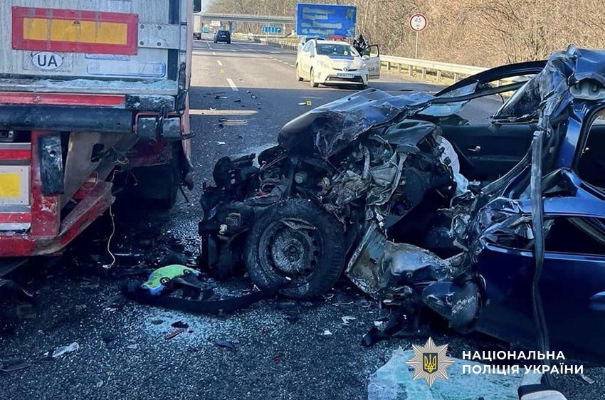 Водій автомобіля «Рено» здійснив наїзд на задню частину напівпричепа вантажівки. Внаслідок аварії керманич легковика загинув на місці, а дружина померла у лікарні. Двоє малолітніх дітей отримали травми, їх госпіталізовано.