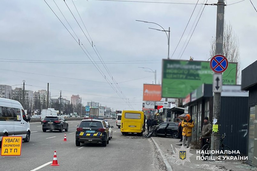 Дорожньо-транспортна пригода сталася сьогодні на Кільцевій дорозі у Святошинському районі столиці. За попередньою інформацією, водій автомобіля «Тойота», 1994 року народження, не впорався з керуванням та здійснив зіткнення з автомобілем «Мерседес» й автобусом, який знаходився біля зупинки громадського транспорту. Внаслідок ДТП смертельно травмовано чоловіка, який стояв на зупинці. Пасажир автівки «Тойота» також отримав тілесні ушкодження, його госпіталізовано.