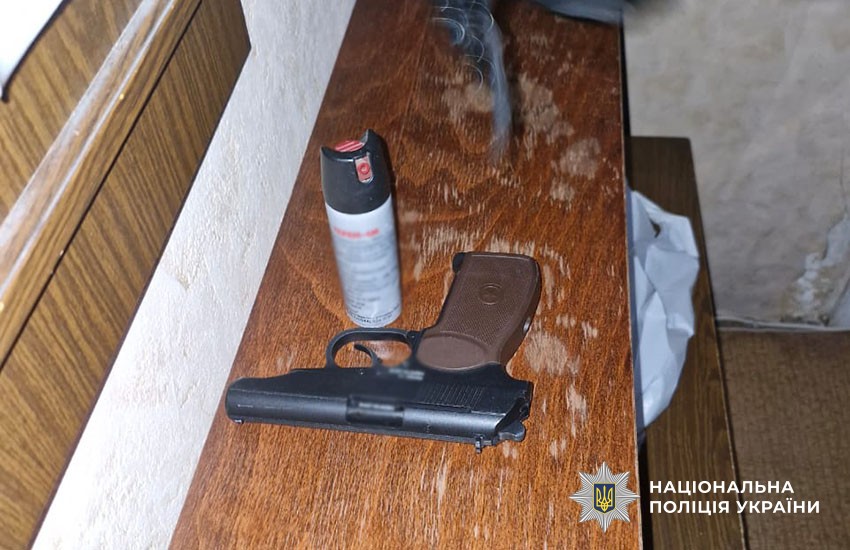 Працівники поліції із залученням співробітників кримінального аналізу та київського управління внутрішньої безпеки оперативно встановили особу порушника — це неодноразово судимий 45-річний місцевий мешканець. Правоохоронці затримали чоловіка та під час невідкладного обшуку за його місцем мешкання вилучили пістолет та форму, походження яких наразі встановлюється.