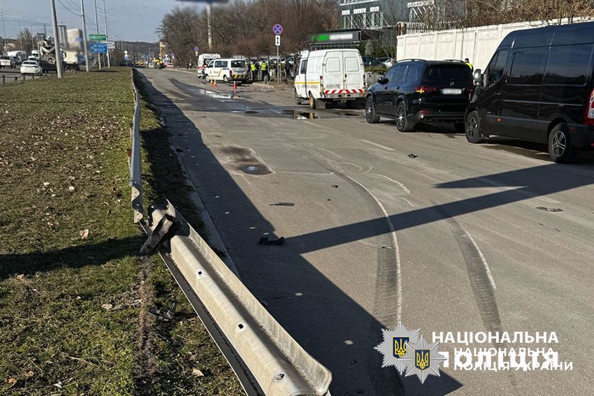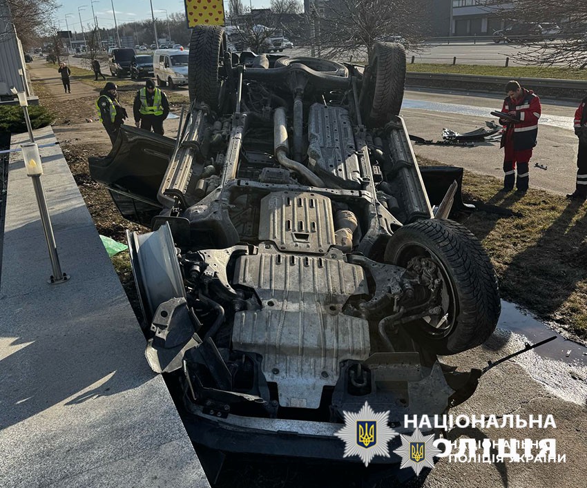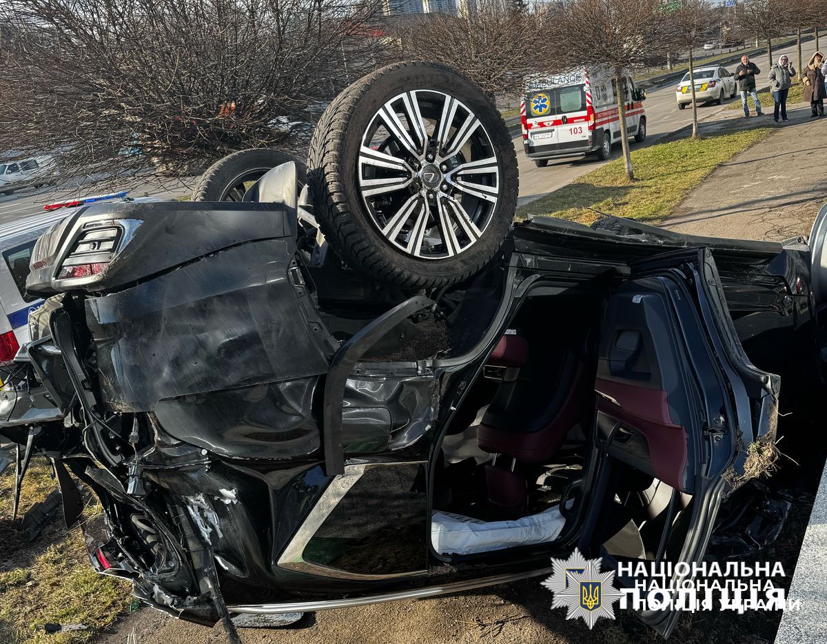 Попередньо встановлено, що керманич Lexus, рухаючись в третій смузі проїзної частини, не впорався з керуванням та скоїв наїзд на металевий відбійник, в результаті чого авто перекинулось.