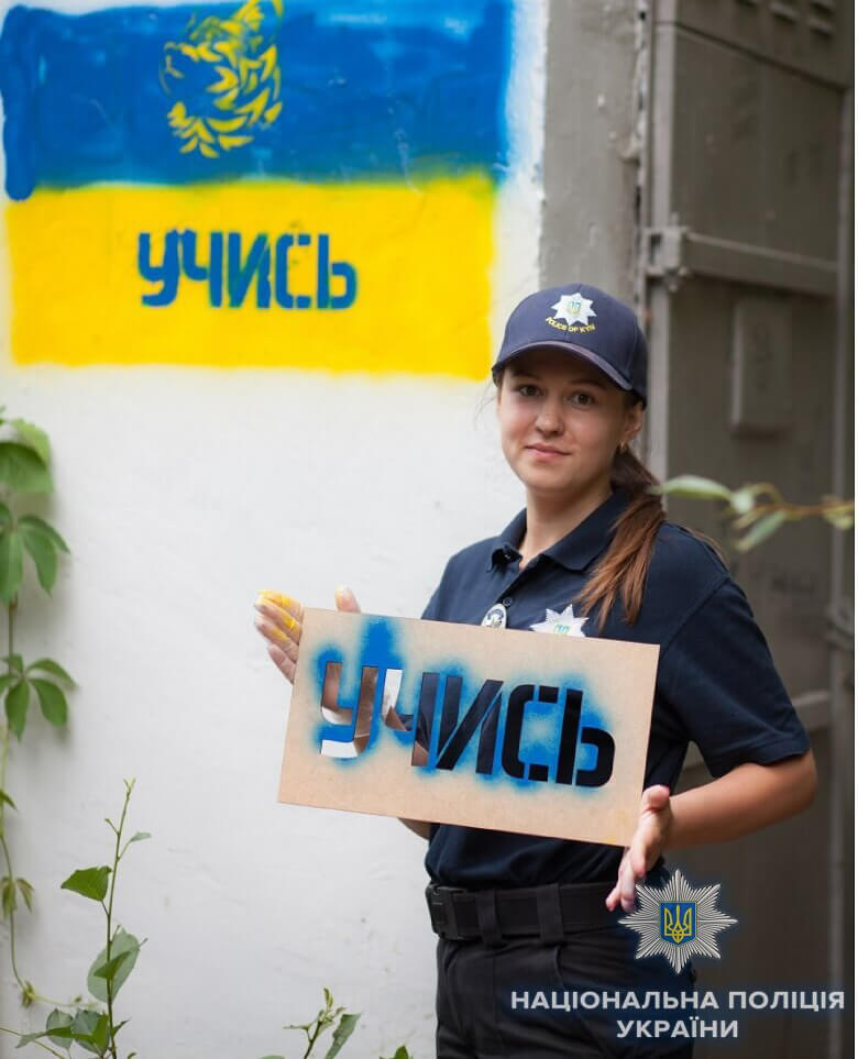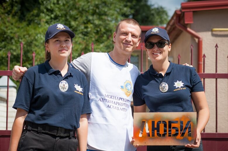 У рамках проекту «Намалюй життя» столичні поліцейські разом із представниками громадської організації «Міжнародна антинаркотична асоціація» та Міністерства молоді та спорту України замість написів про наркотики малювали на стінах будівель державний прапор України.