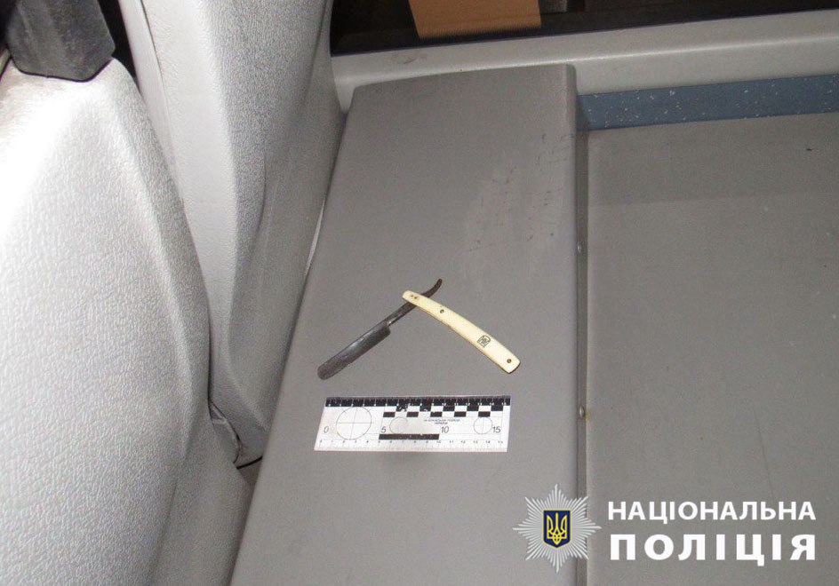 Як з’ясувалось, злочину передував конфлікт з приводу того, що хлопець гучно прослуховував музику на портативній колонці та не реагував на зауваження інших пасажирів. У подальшому 53-річний чоловік перукарською бритвою вдарив юнака, спричинивши йому різану рану обличчя. Неповнолітнього потерпілого медики госпіталізували до закладу охорони здоров’я, а поліцейські затримали порушника у порядку ст. 208 Кримінального процесуального кодексу України.
