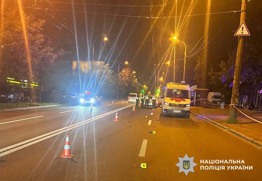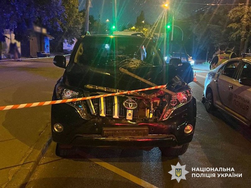 Трагічна аварія сталася у Шевченківському районі столиці. Керманич позашляховика «Toyota Land Cruiser» спочатку проїхав на червоний сигнал світлофора, а потім намагаючись втекти від поліцейських наїхав на пішохода, який перетинав дорогу. За вчинене йому загрожує до десяти років ув’язнення.