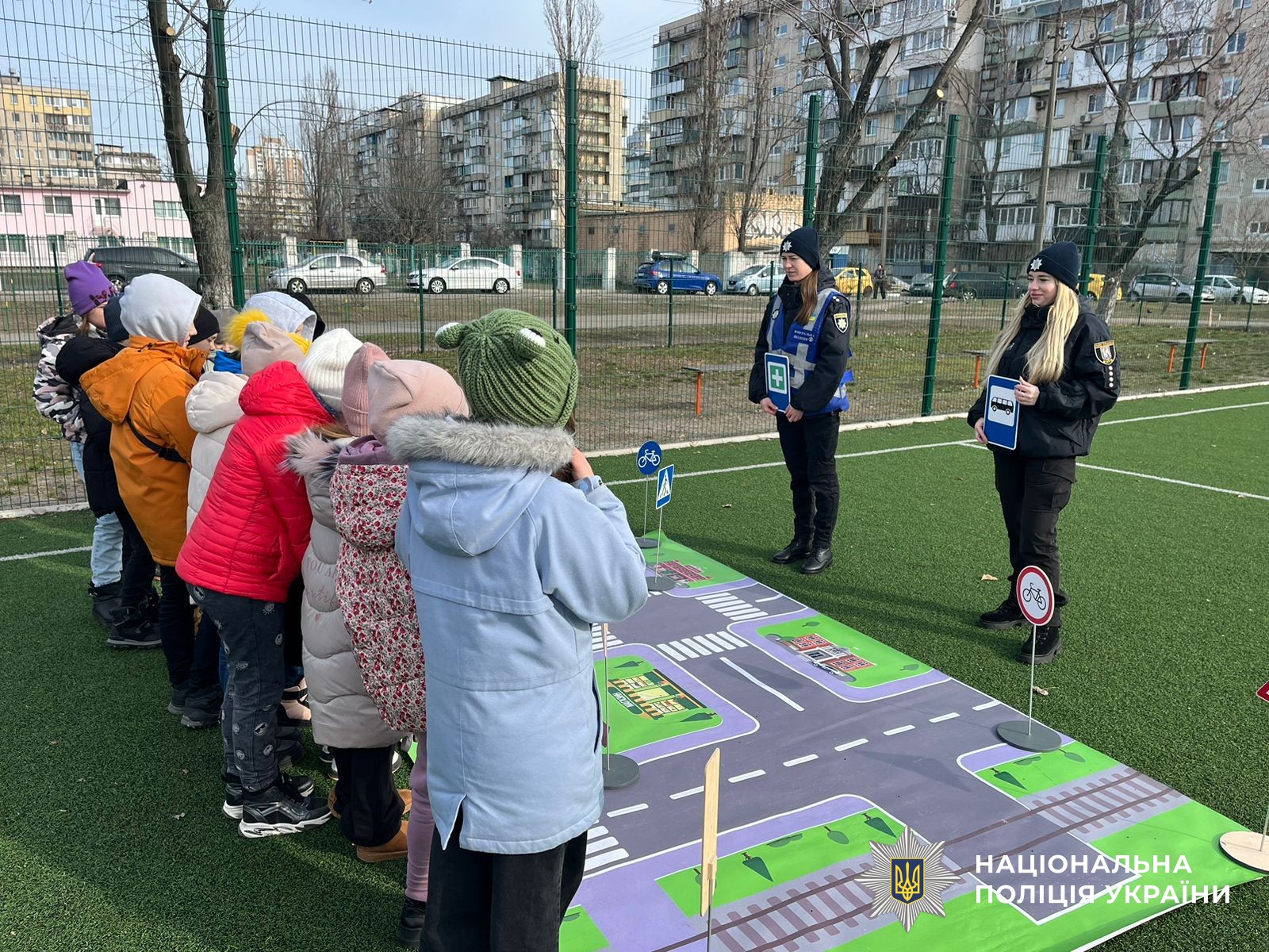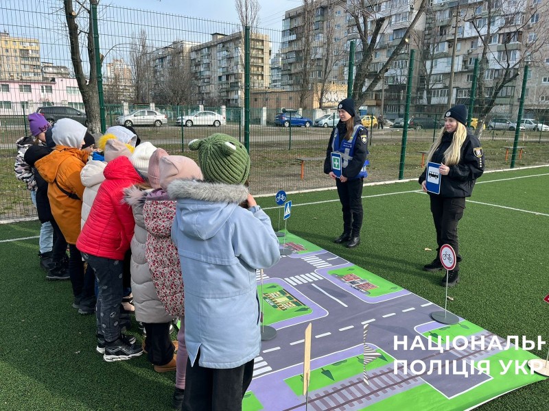 Охоронці порядку ознайомили хлопців та дівчат з правилами дорожнього руху та нагадали про поведінку пішоходів на вулиці, дорожні знаки, світлофор, розмітку - «зебру» та нагадали про флікери, які важливо мати на одязі пішоходам у темну пору доби.