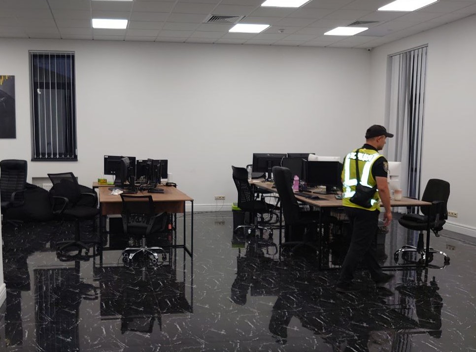 Начальник Шевченківського управління поліції Ігор Падюк повідомив, що на місці події правоохоронці виявили близько сотні робочих місць, обладнаних комп’ютерами та телефонами: