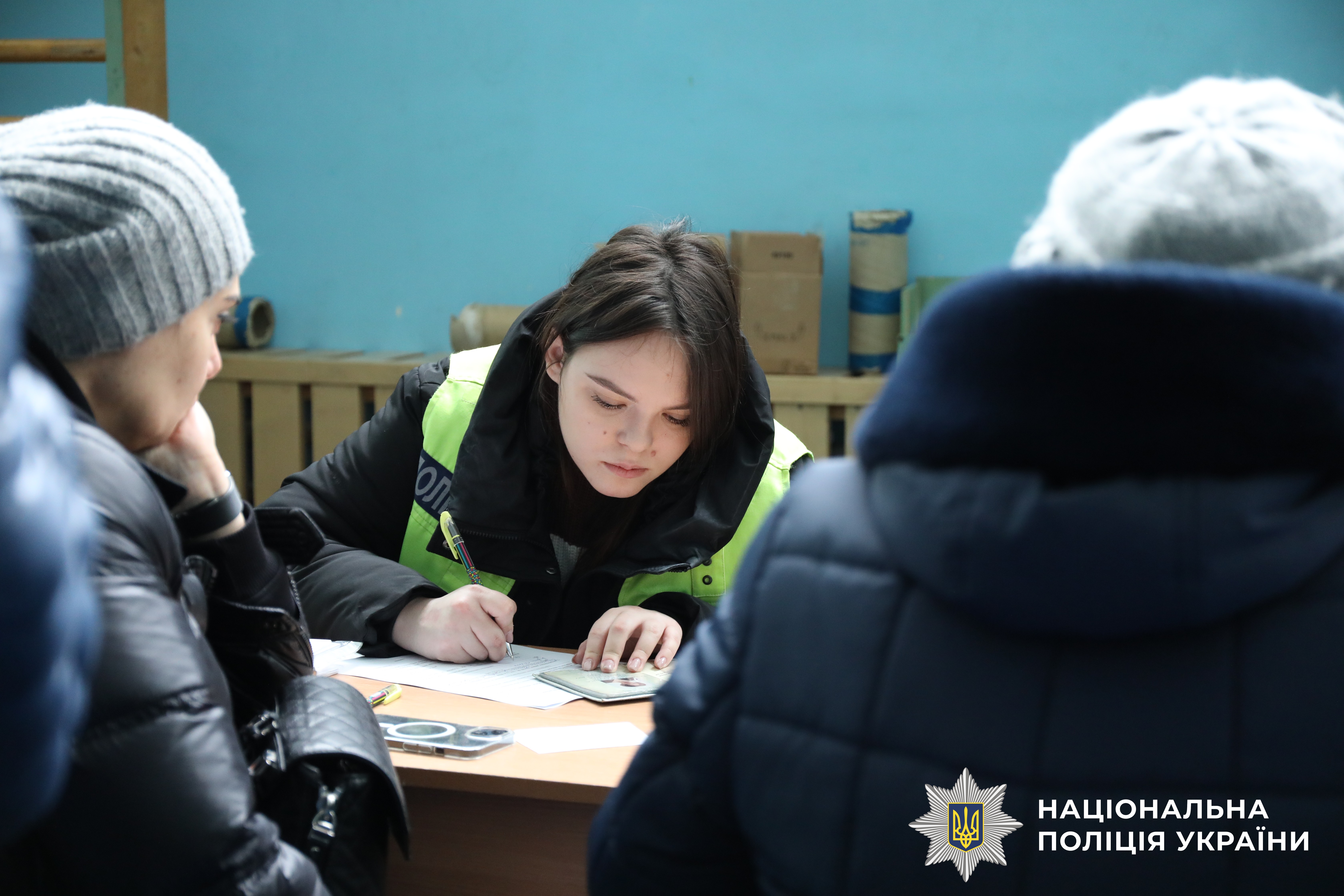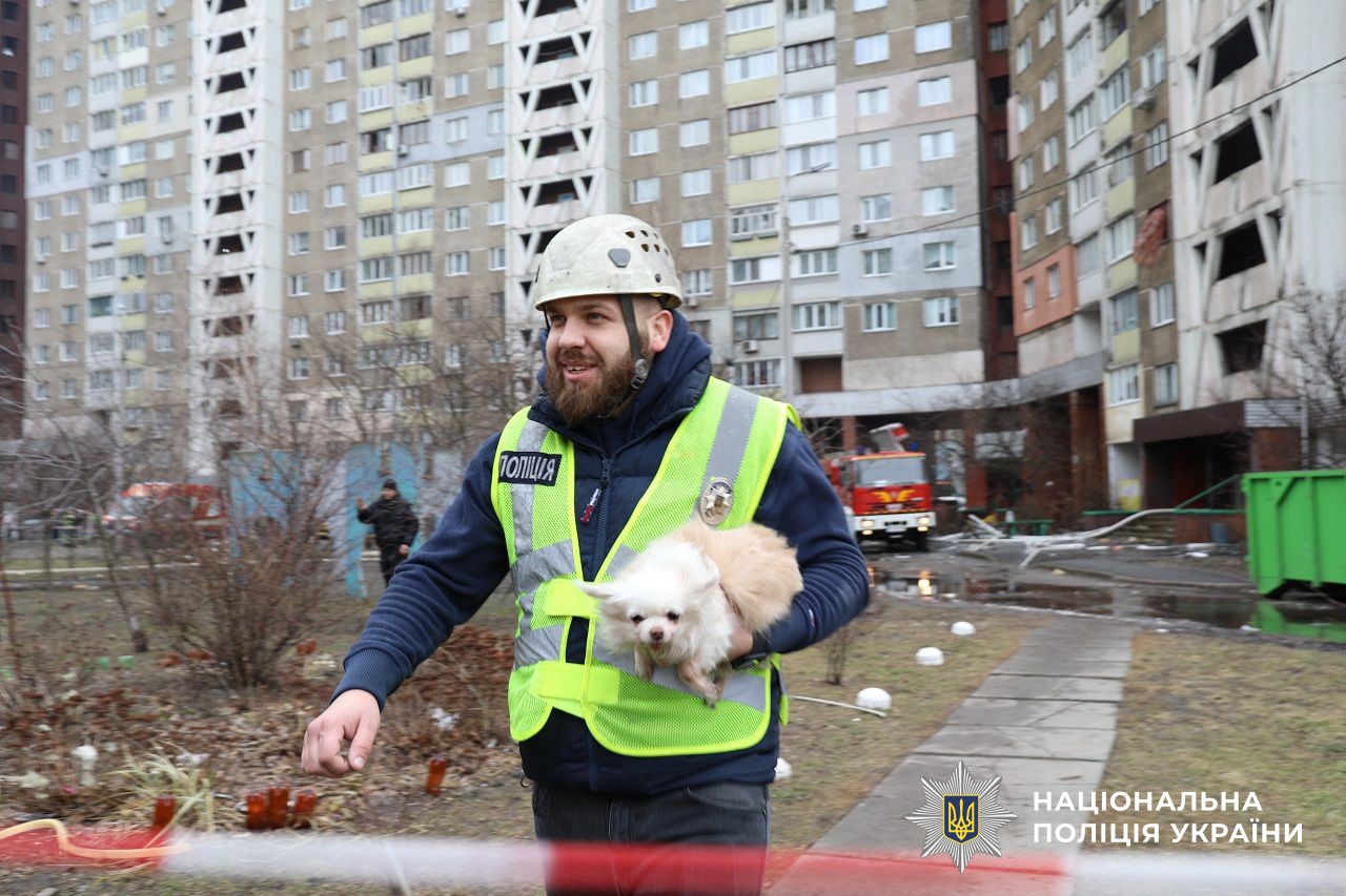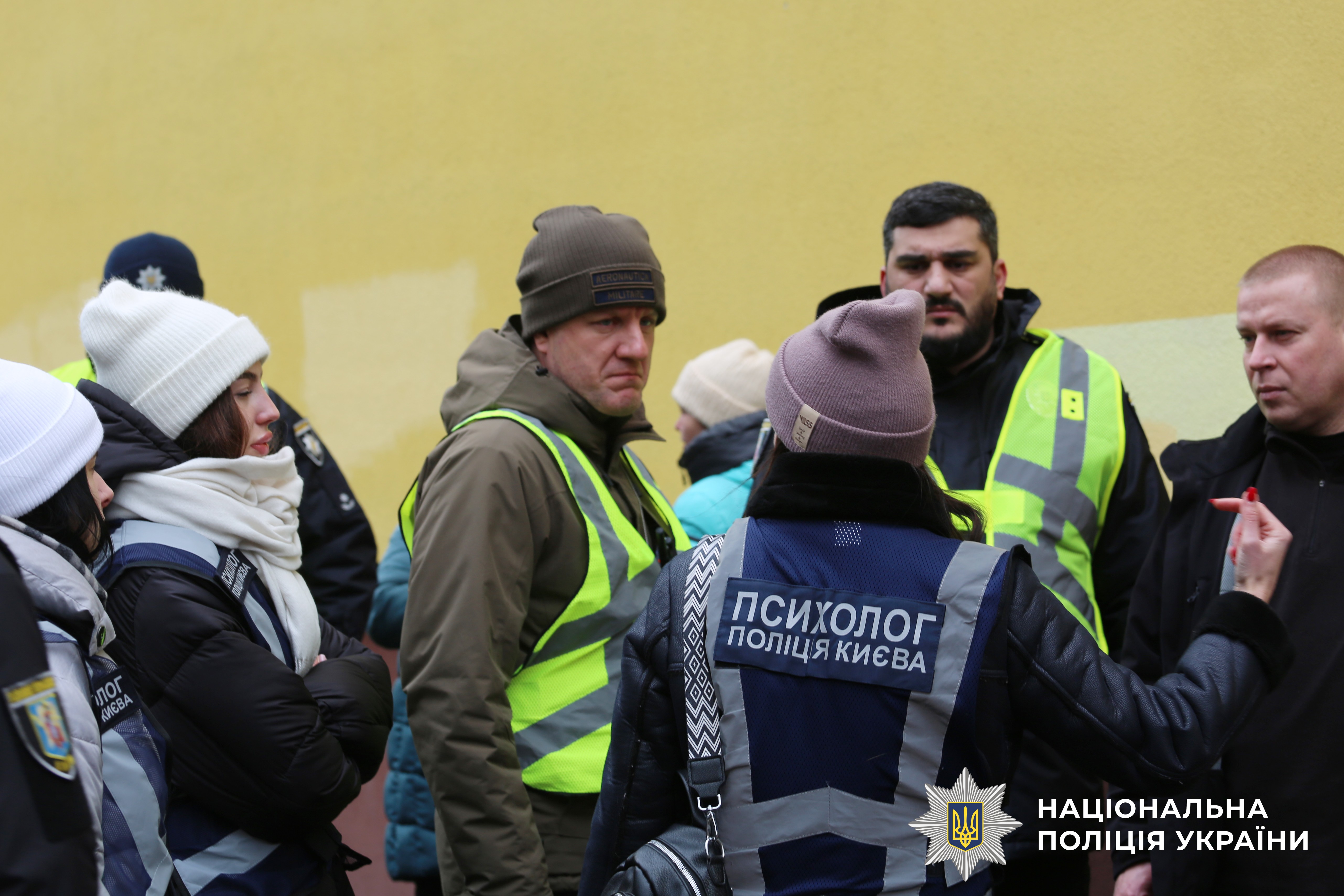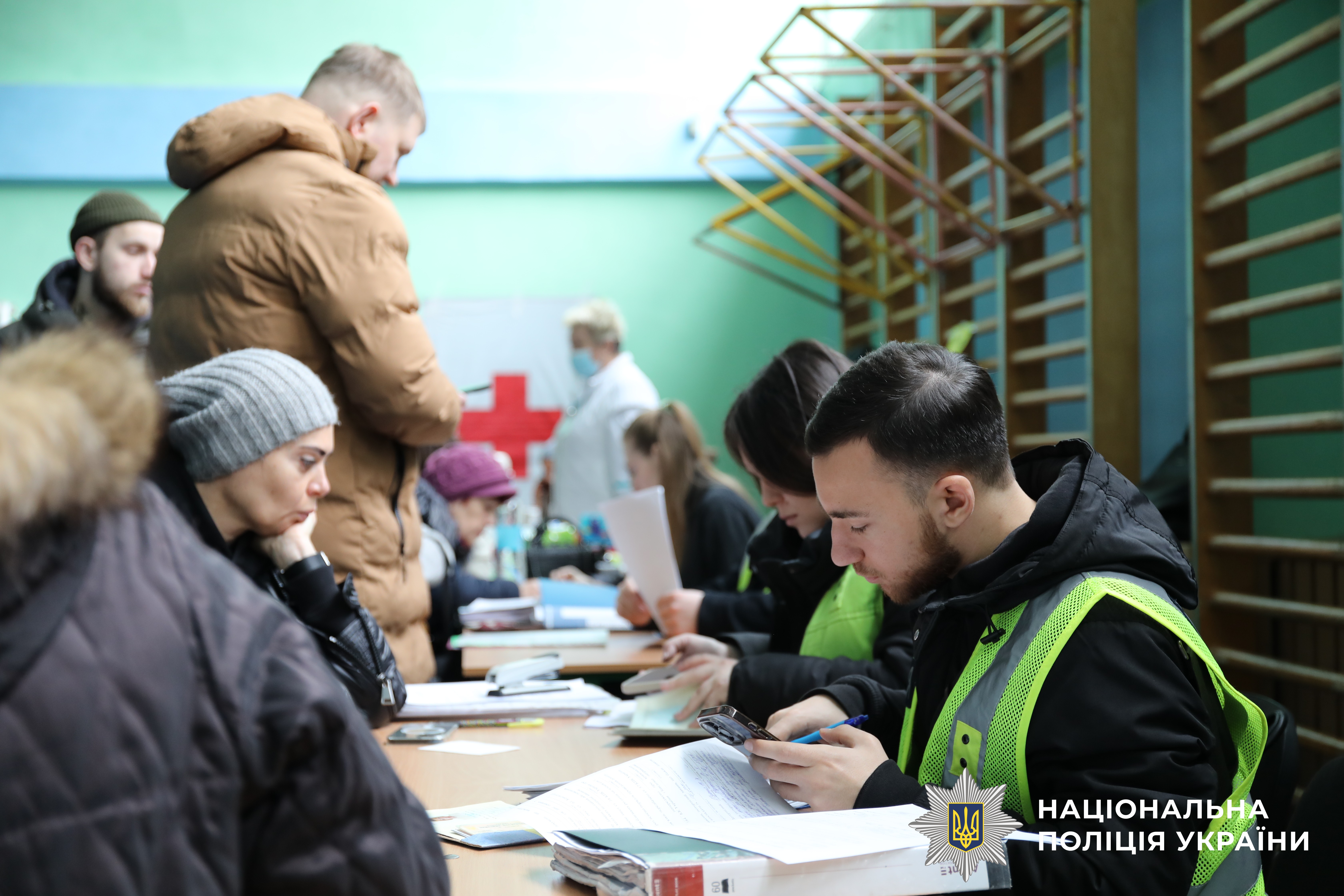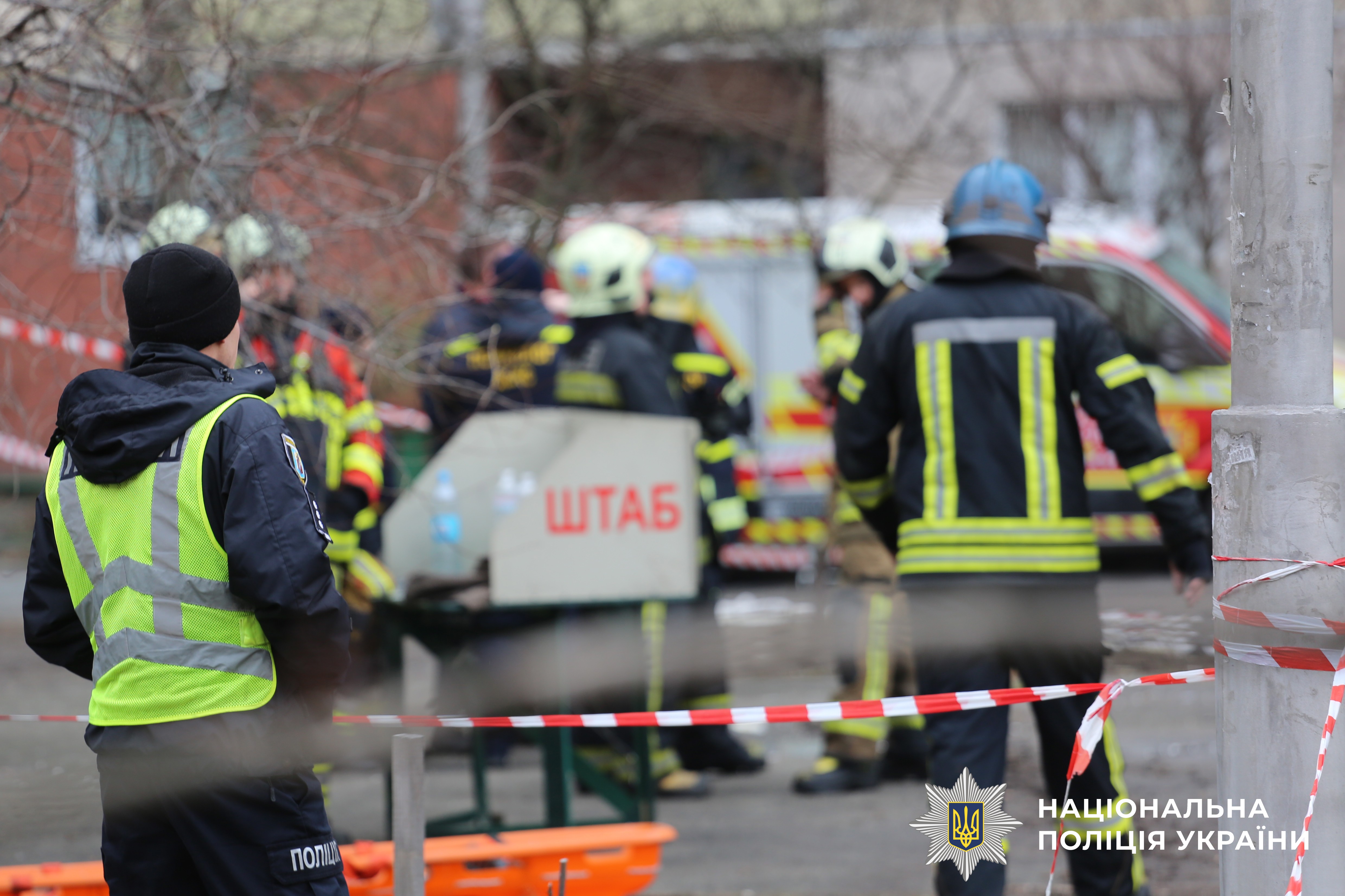 Поліцейські допомагають рятувальниками проводити пошукові заходи, опитують свідків події та проводять огляд місць влучань.