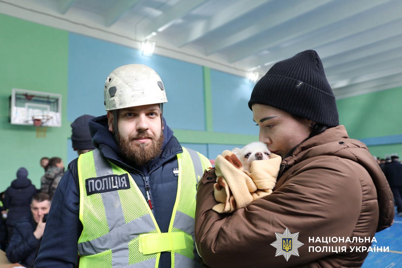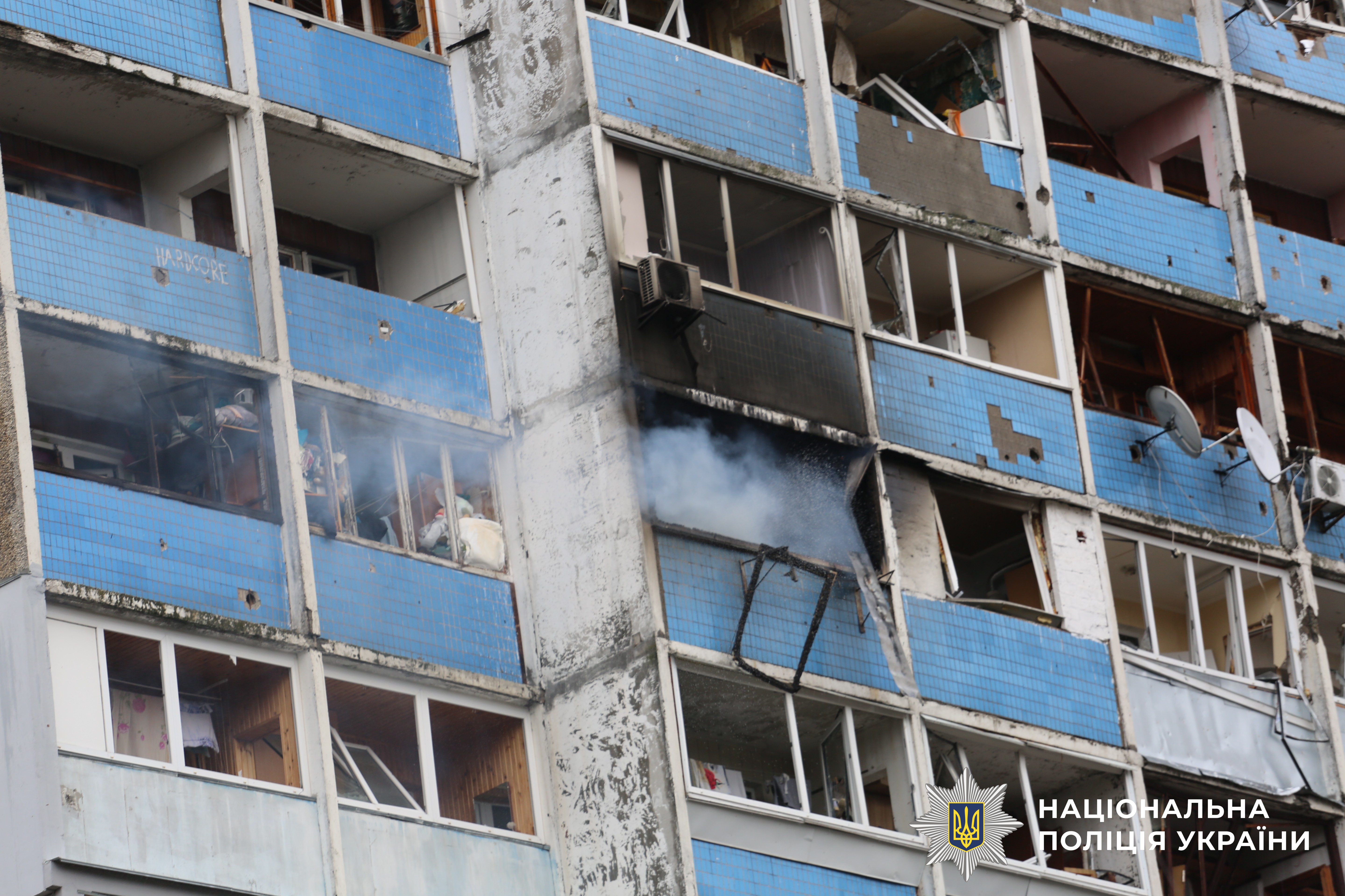 Правоохоронці продовжують працювати на місцях: проводять пошуково-рятувальні заходи, ліквідовують наслідки ворожої атаки, опитують свідків та проводять огляд місця події. Також поліцейські-психологи надають громадянам необхідну допомогу. На даний час відомо про 4 загиблих та 40 потерпілих громадян.