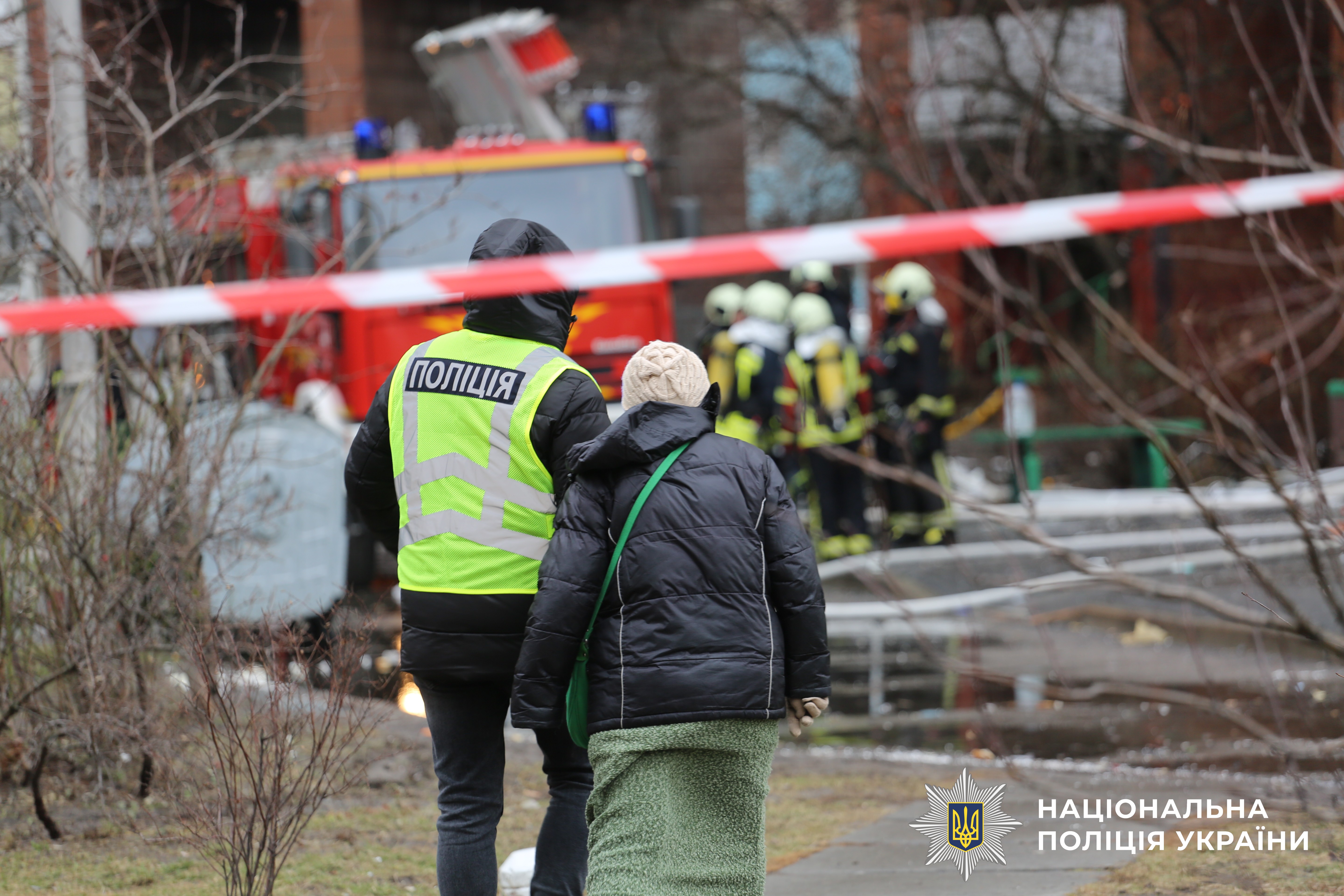 Правоохоронці продовжують працювати на місці падіння уламків російської ракети в Голосіївському районі столиці