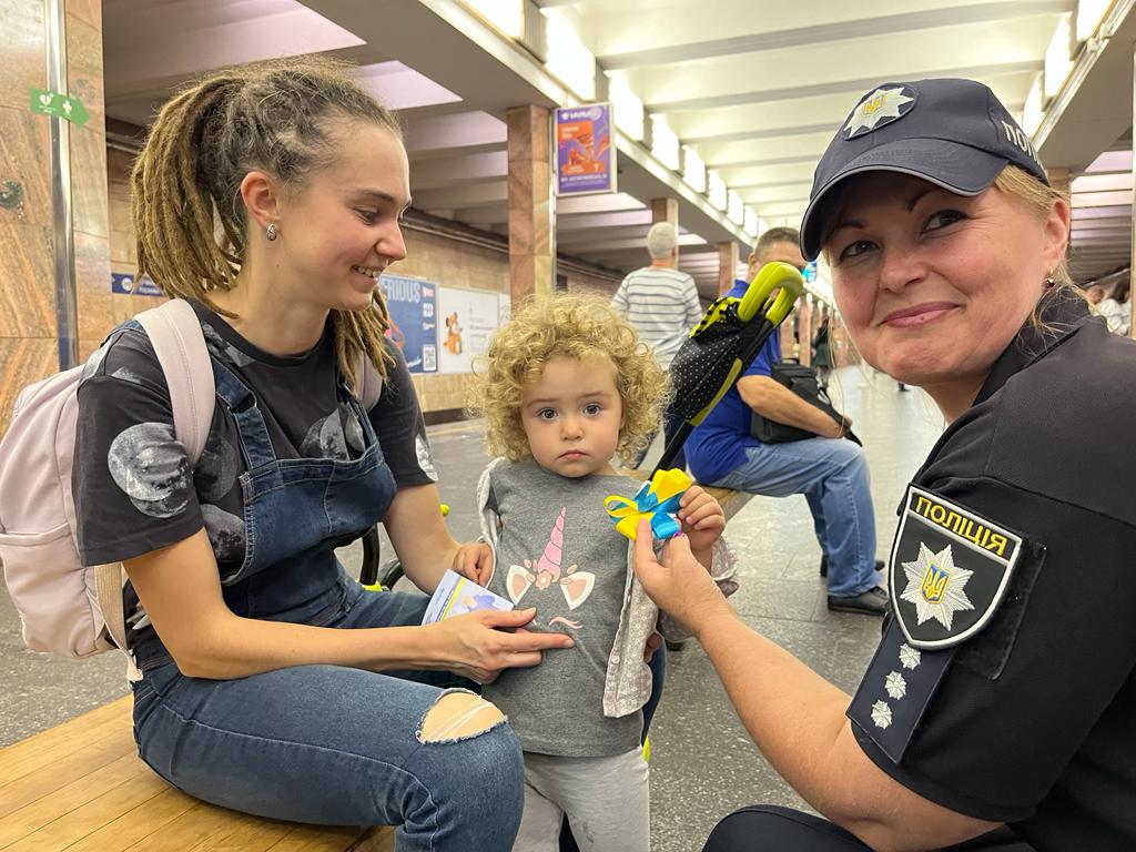 Поліцейські привітали пасажирів київського метрополітену з Міжнародним Днем Миру, а також нагадали малечі та дорослим про те, як важливо зберігати віру у Перемогу України, підтримувати наших Захисників і Захисниць й піклуватися про власну безпеку під час повітряної тривоги.