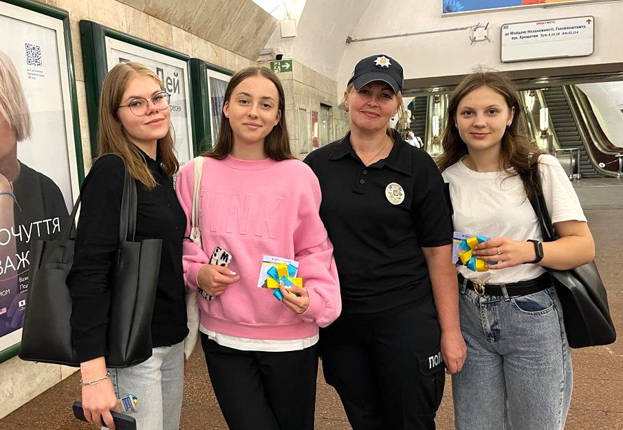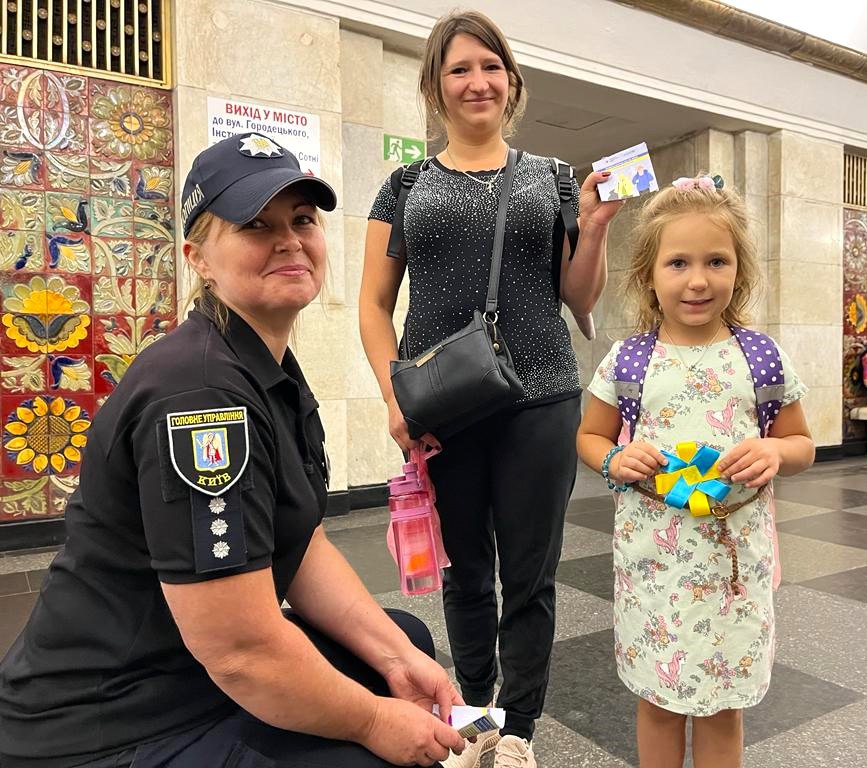 З нагоди Міжнародного Дня Миру правоохоронці управління поліції метрополітену разом із юними пасажирами київської підземки долучилися до акції «Україна за Мир». Ювенальний інспектор розповіла дітлахам та підліткам про важливість підтримання миру в нашій країні та світі, а також наголосила, що зараз, коли наші військові виборюють свободу і незалежність України та відбивають атаки ворога, їм необхідні підтримка та віра.