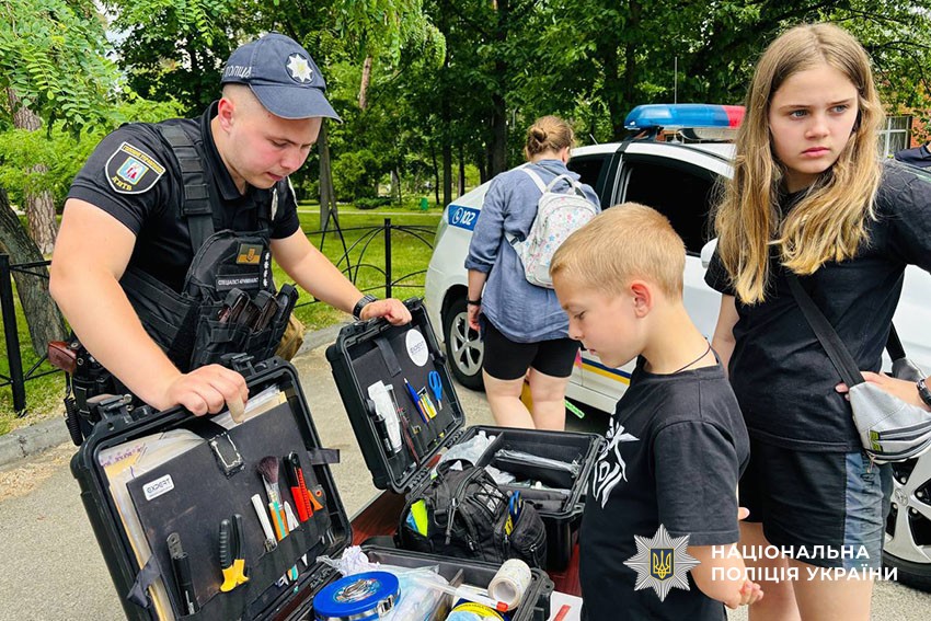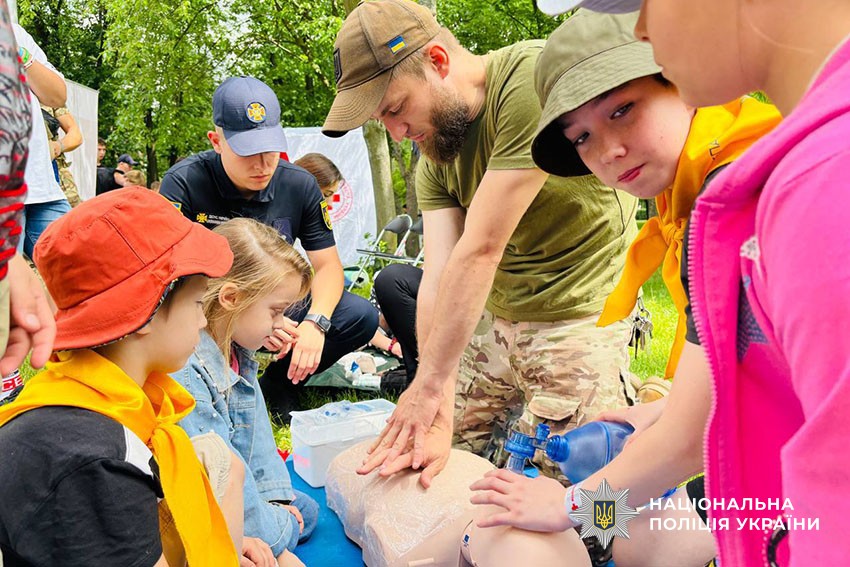 Спеціаліст-криміналіст поліції ознайомив дітей зі специфікою своєї роботи, а рятувальники провели мастер-клас з надання першої медичної допомоги.