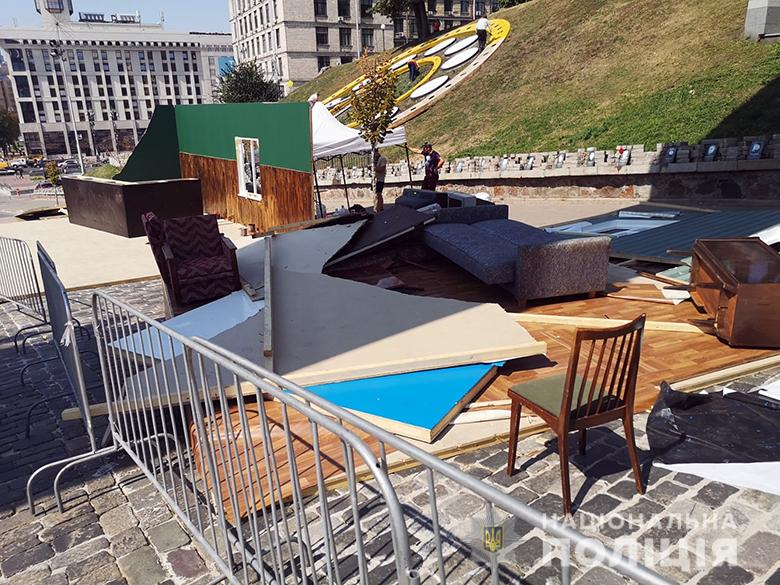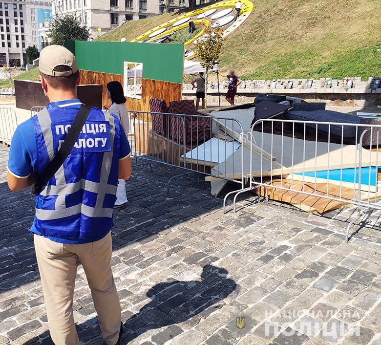 У середмісті Києва на Алеї Героїв Небесної Сотні, де відбувався монтаж інсталяції для святкових заходів з нагоди відзначення 30-річчя Незалежності України, сталася суперечка через питання щодо законності встановлення цієї конструкції. На місці події зібралися громадяни, які намагалися здійснити її демонтаж. У результаті цього між ними та правоохоронцями виникла штовханина.