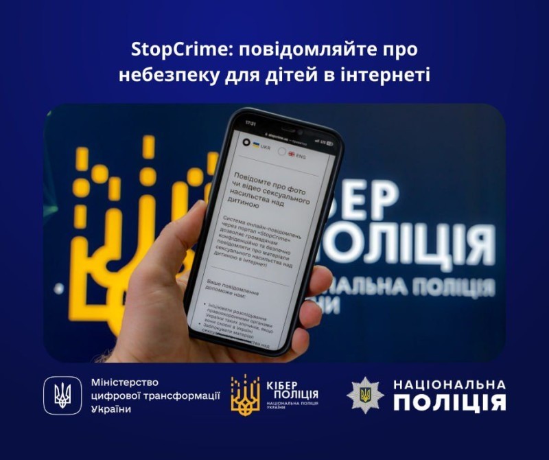 Тим часом, громадською організацією «Магнолія» за підтримки Міністерство цифрової трансформації України, Дія.Освіта та Департаменту кіберполіції Національної поліції України створено портал StopCrime для анонімних повідомлень про матеріали і злочини, пов’язані із сексуальним насильством над дітьми в інтернеті.