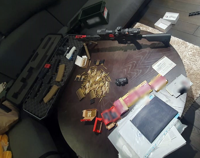 За місцем проживання чоловіка та у автомобілі правоохоронці провели санкціоновані обшуки, під час яких вилучили квитанції, гроші, отриманні злочинним шляхом, частину замовленої амуніції, мобільні телефони, сім-карти, чорнові записи та інші речові докази протиправної діяльності. Також поліцейські вилучили зброю та набої до неї, вид та походження яких буде встановлено після проведення експертизи.
