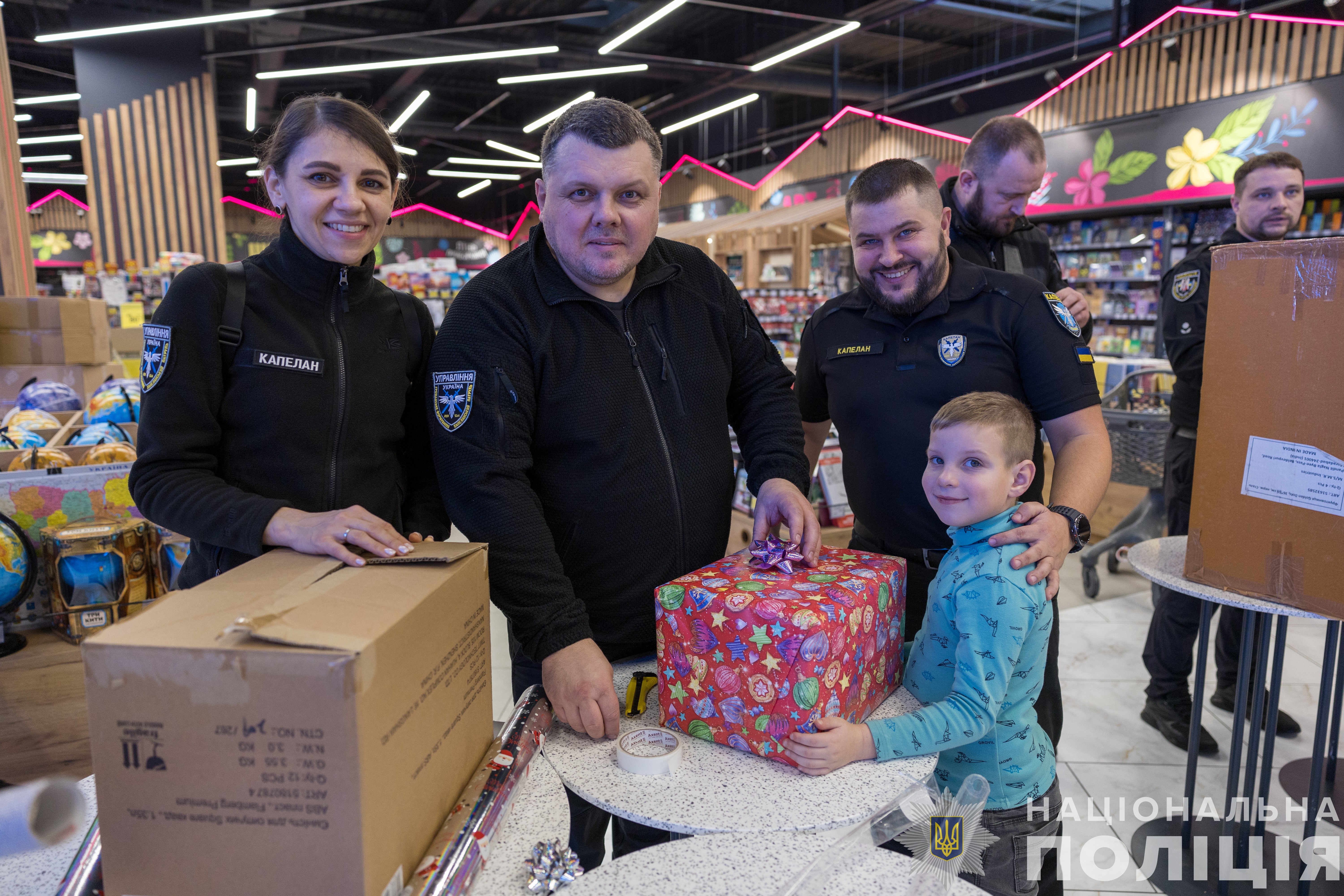 Уже четвертий рік поспіль Національна поліція України за ініціативою громадської організації «Капеланський патруль» проводить захід для дітей, які потребують особливої підтримки. Цьогоріч діти поліцейських, які загинули, зникли безвісти або знаходяться у полоні, мали змогу особисто вибрати подарунки для себе та рідних під новорічну ялинку.