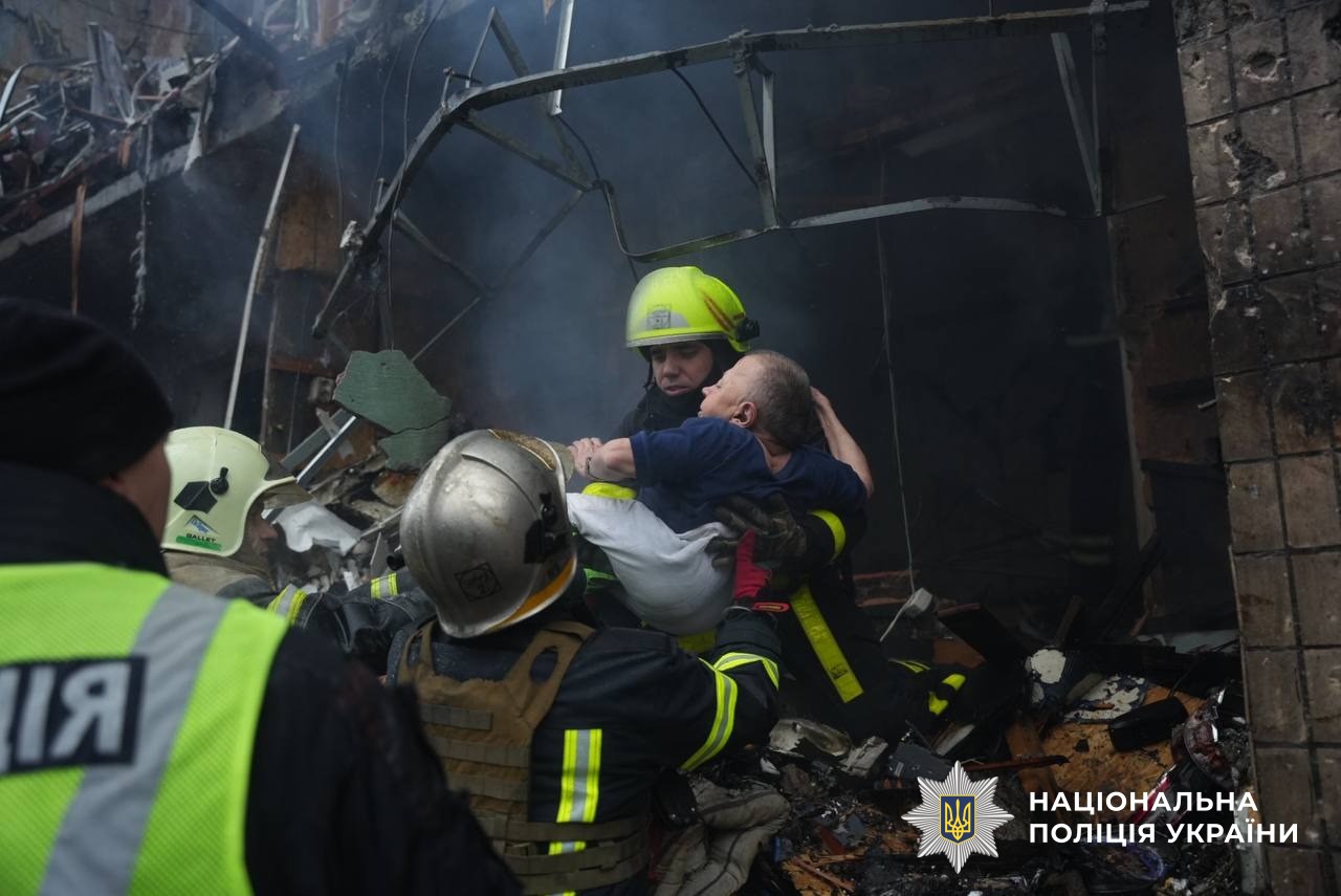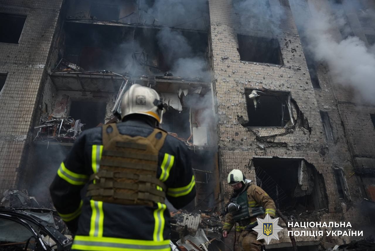 Київ. Оперативні служби працюють у 6-ти районах, де виникли 7 пожеж: Оболонському, Печерському, Подільському, Соломʼянському, Святошинському та Деснянському. Із багатоповерхівки в Соломянському районі евакуйовано понад 130 людей. Близько 20 врятовано надзвичайниками із заблокованих приміщень. Загалом у столиці зафіксовано понад 20 поранених.