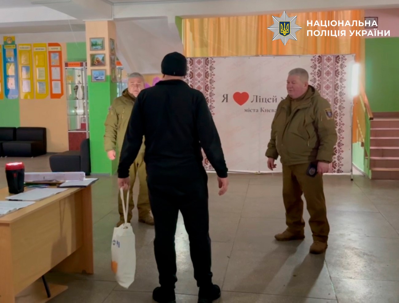 За легендою, до холу навчального закладу намагався пройти невідомий, який після того, як його зупинили охоронці закладу, кинув у приміщення сумку та почав тікати. Співробітники муніципальної охорони натиснули на «тривожну кнопку» й за лічені хвилини на сигнал прибули поліцейські, які оперативно вистежили та затримали умовного зловмисника.