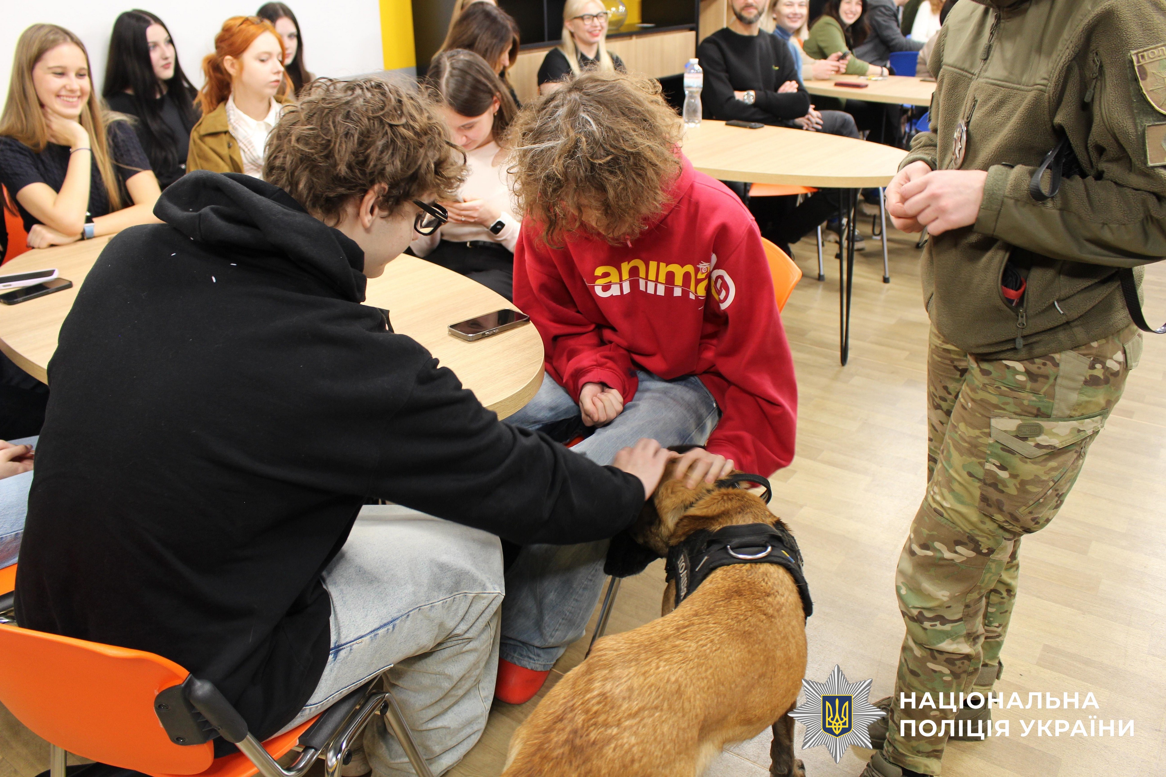«Собаки, що лікують серця»: у Києві поліцейські кінологи та психологи провели пет-терапію для студентів