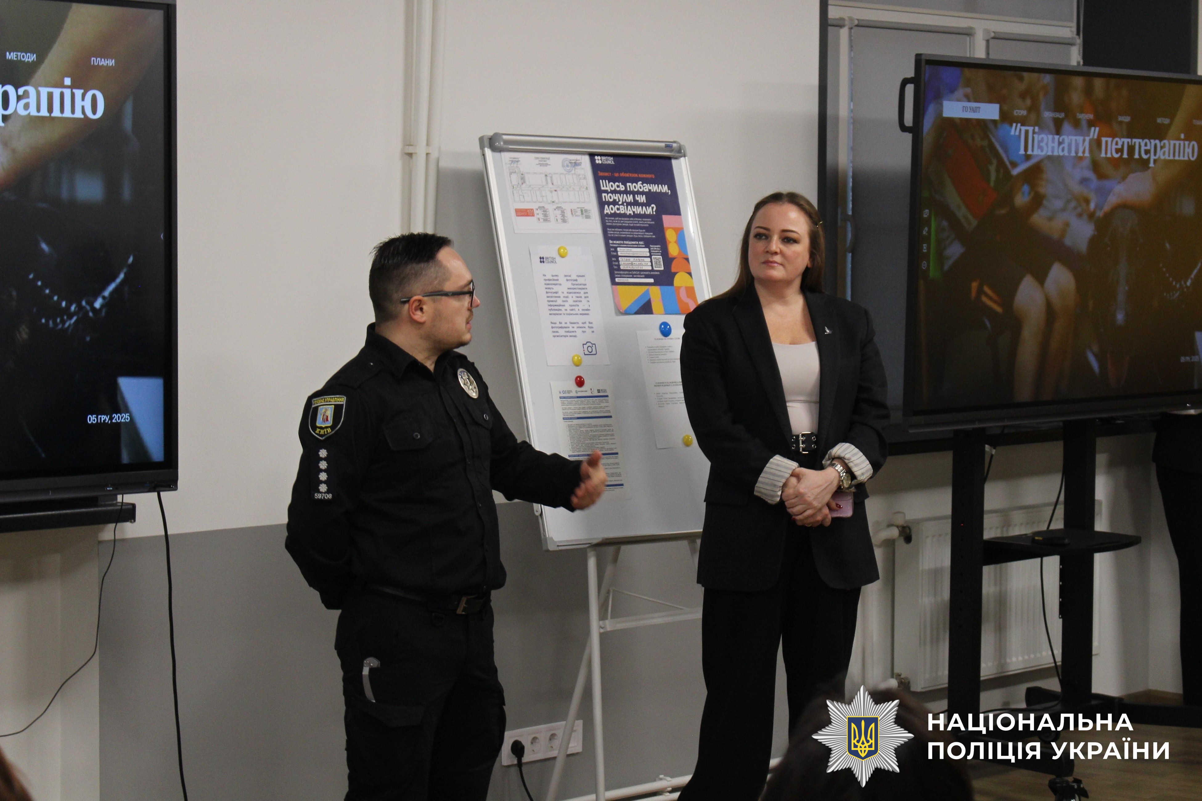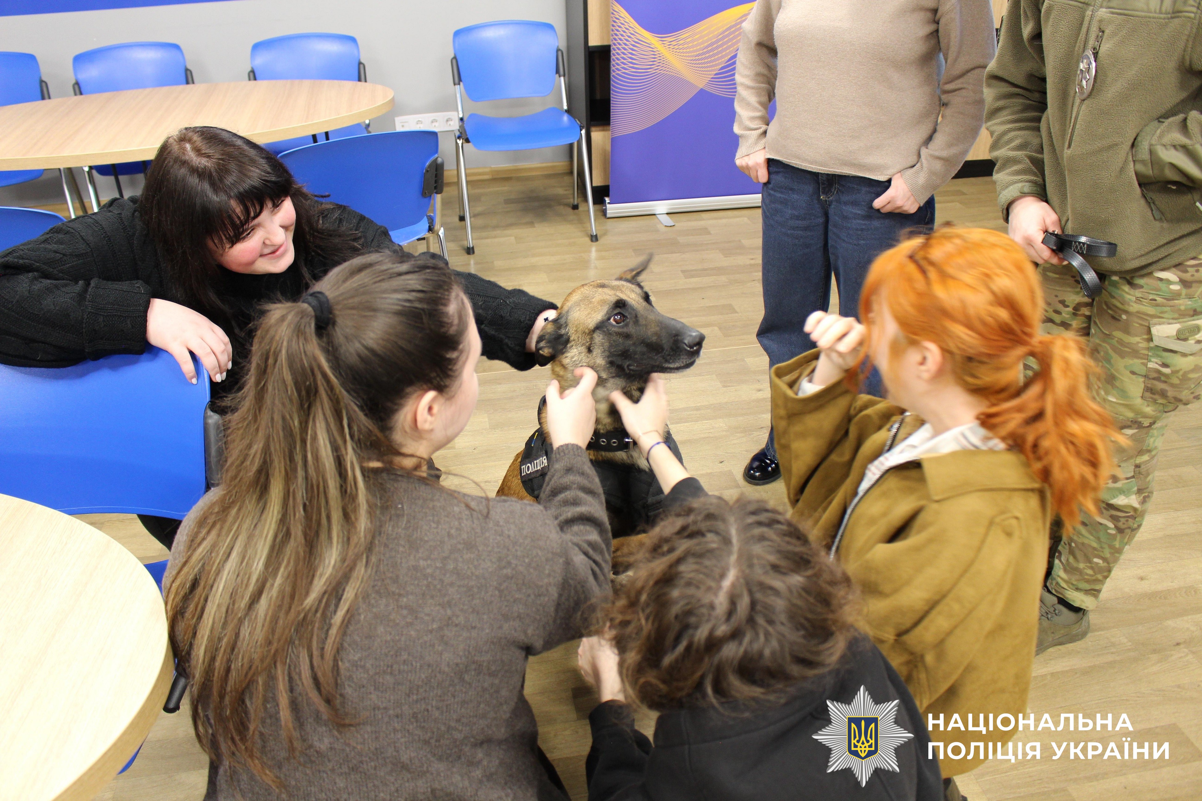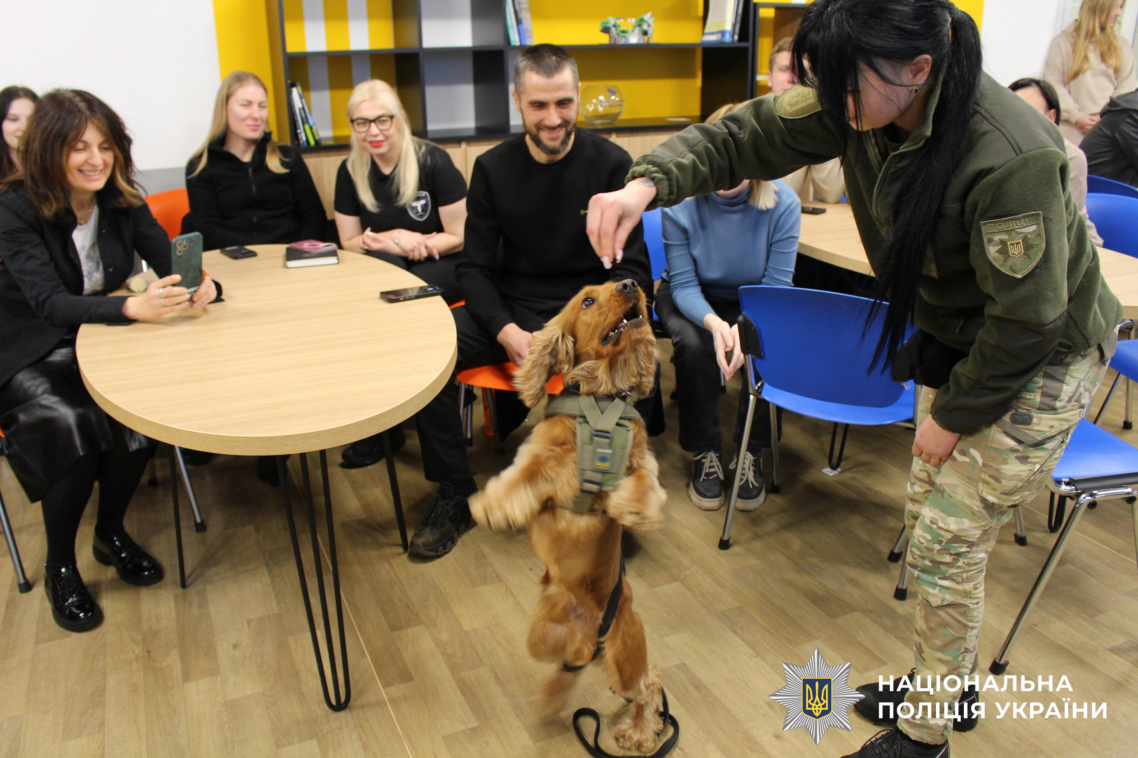 Правоохоронці разом із службовими собаками взяли участь у заході з пет-терапії для студентів Маріупольського державного університету, де розповіли, як взаємодія з тваринами допомагає долати наслідки війни та відновлювати ресурсний стан. Подія стала частиною напрямів, що впроваджуються в межах національної програми ментального здоров’я «Ти як?» за ініціативою Першої леді Олени Зеленської.