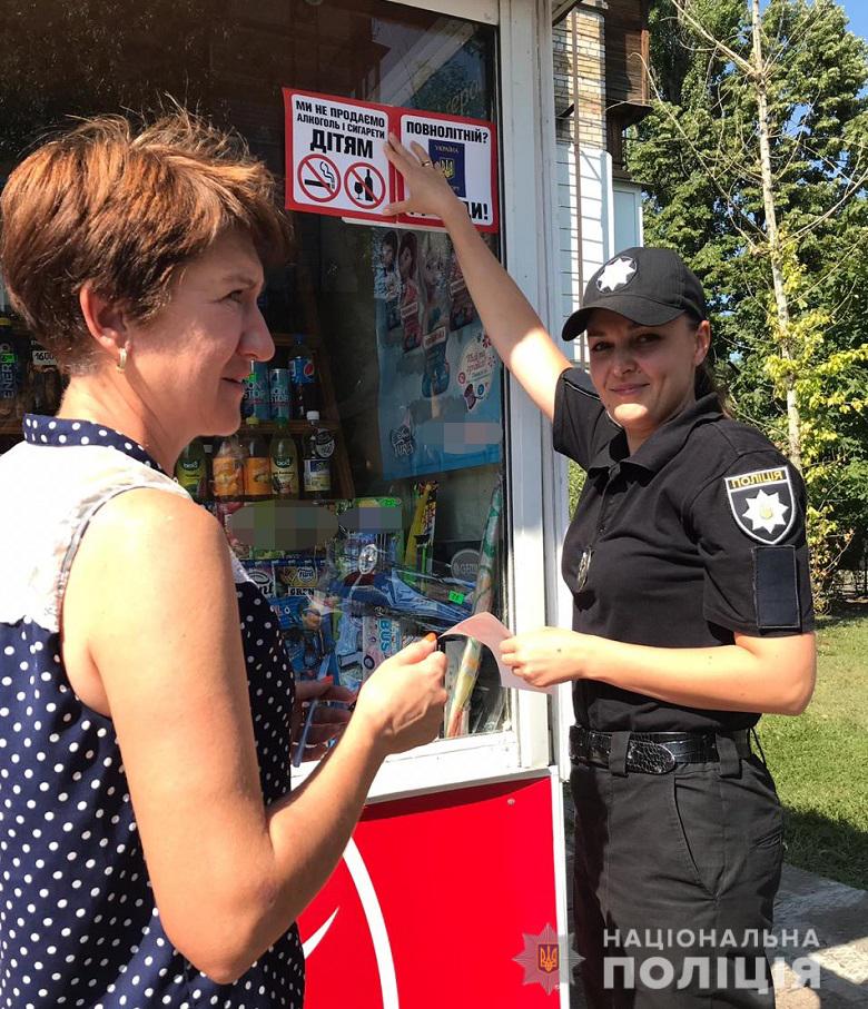 Поліцейські звертаються до підприємців та працівників торгівлі з проханням неухильно дотримуватись вимог чинного законодавства та не продавати алкогольні напої та тютюнові вироби дітям.