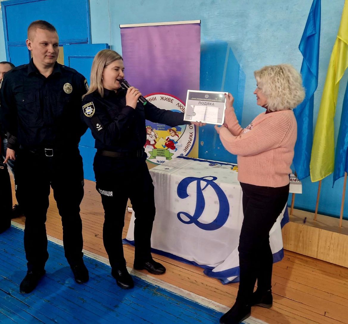 Поліцейські приймали активну участь у грі та підбадьорюючи дітлахів допомагали їм йти до перемоги. Захід проходив у веселій дружній атмосфері взаємоповаги та підтримки. На закінчення команди отримали від спортивного товариства грамоти, а поліцейські відзначили всіх учасників подарунками та кольоровими повітряними кульками.