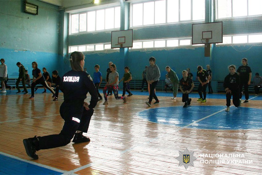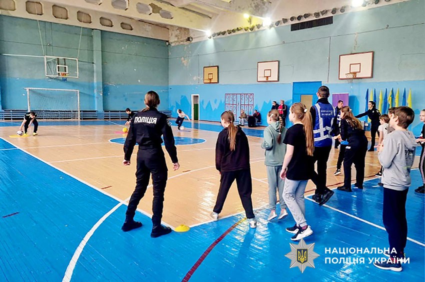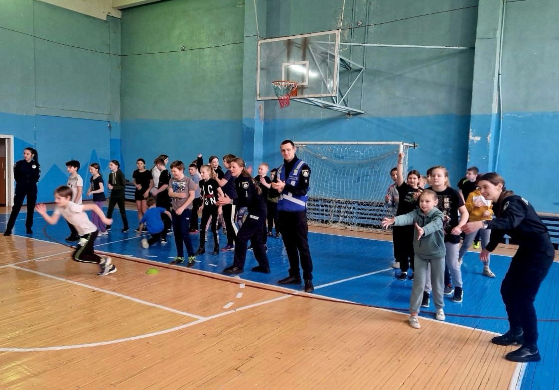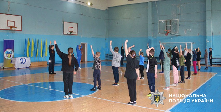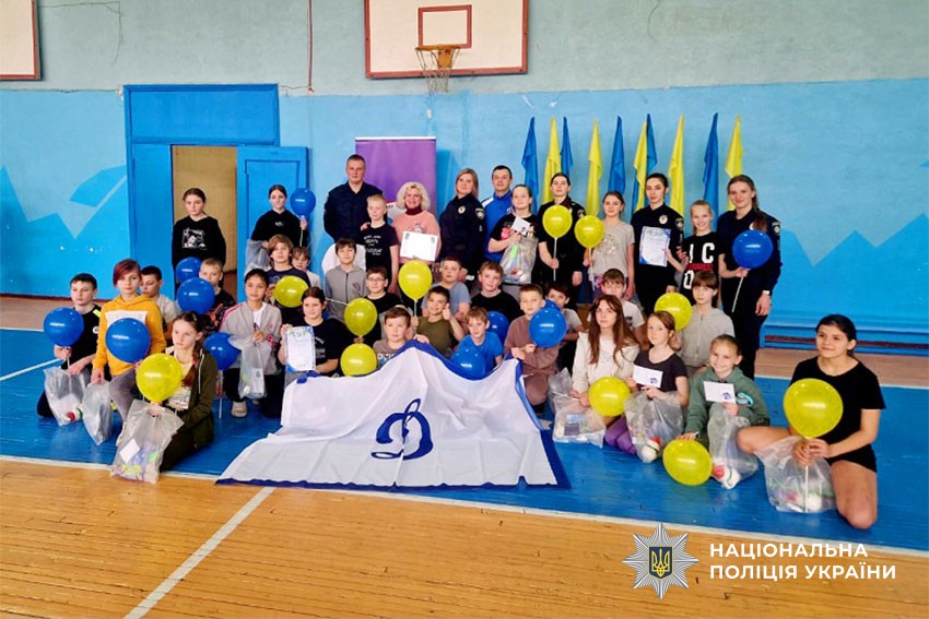 Учні спільно з поліцейськими та під керівництвом фахівців ФСТ «Динамо» провели олімпійську розминку та розділилися на команди. Попереду їх чекала естафета з виконанням різних вправ. У ході змагання учні обрали патріотичні назви своїм командам та старанно виконували завдання.