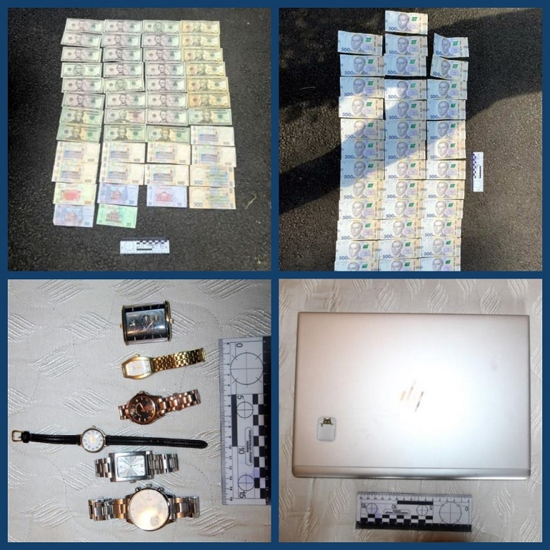 Провівши першочергові слідчі дії правоохоронці встановили, що зловмисник проник до житла, яке знаходиться на першому поверсі багатоквартирного будинку, шляхом віджиму металопластикового вікна. З помешкання невідомий викрав гроші у сумі 14 500 доларів США, 50 000 польських злотих, 600 Євро, 10 000 гривень, мобільний телефон, два ноутбуки, дві золоті каблучки, золотий хрестик та золоту підвіску.