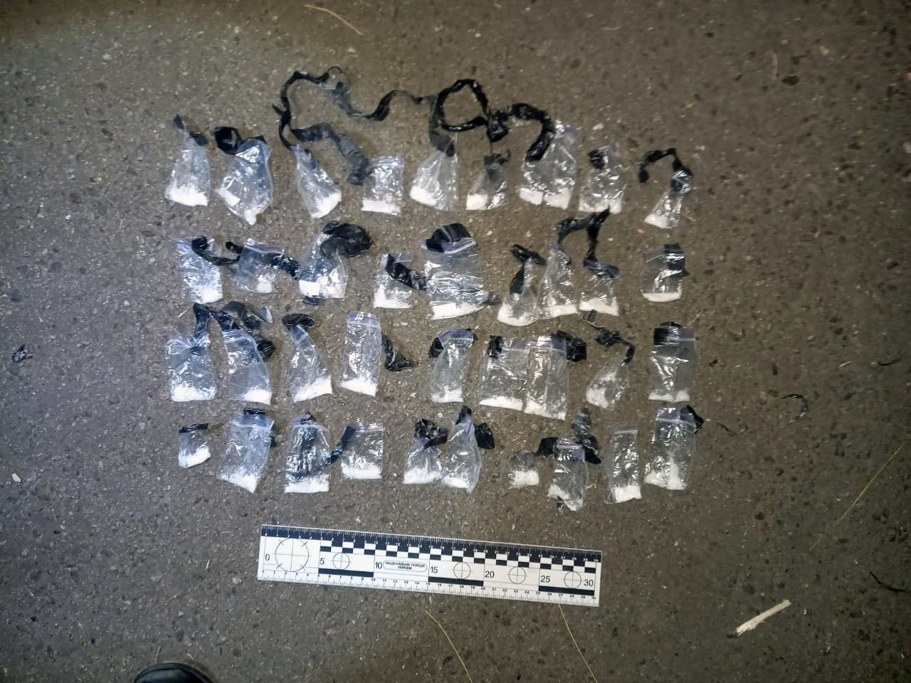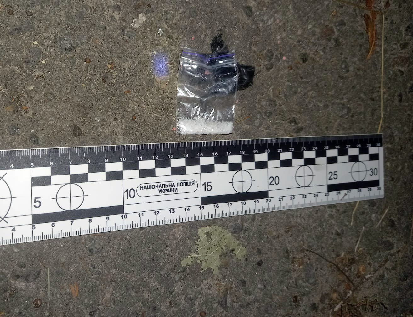 На місце поді прибула слідчо-оперативна група, яка задокументувала злочин. У ході поверхневого огляду у фігуранта поліцейські виявили 38 згортків психотропної речовини солі Альфа-PVP, яку він зберігав з метою збуту. Також чоловік показав місця, де він вже встиг зробити схованки з 4 згортками з аналогічним наркотиком. Зловмисником виявився 35-річний місцевий мешканець. Речові докази поліцейські вилучили та направили на експертне дослідження.