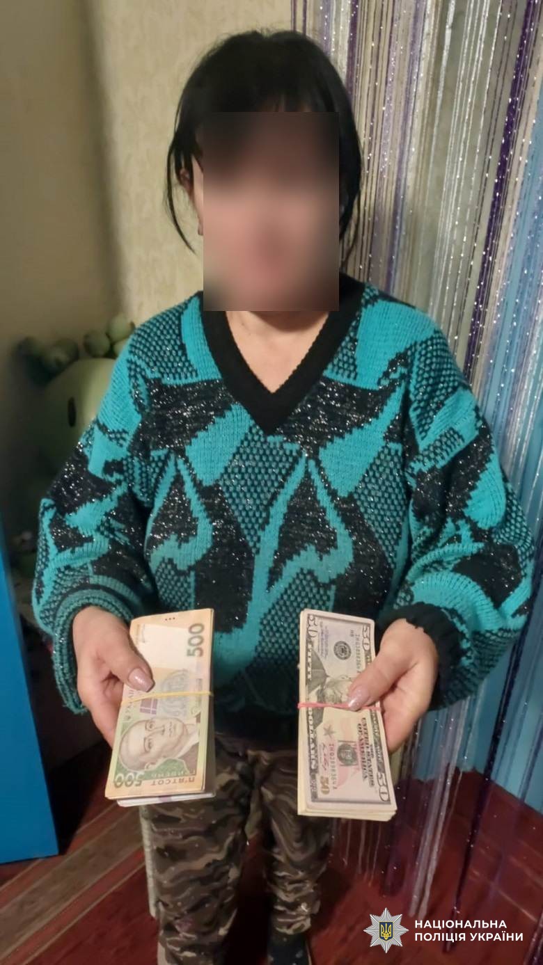 Жінка під час візиту до пенсіонера викрала з квартири 5 250 доларів США та 94 000 гривень. Під час невідкладного обшуку за місцем проживання підозрюваної правоохоронці вилучили речові докази, а саме майже всю викрадену суму. Понад 30 000 гривень зловмисниця встигла витратити на власні потреби.