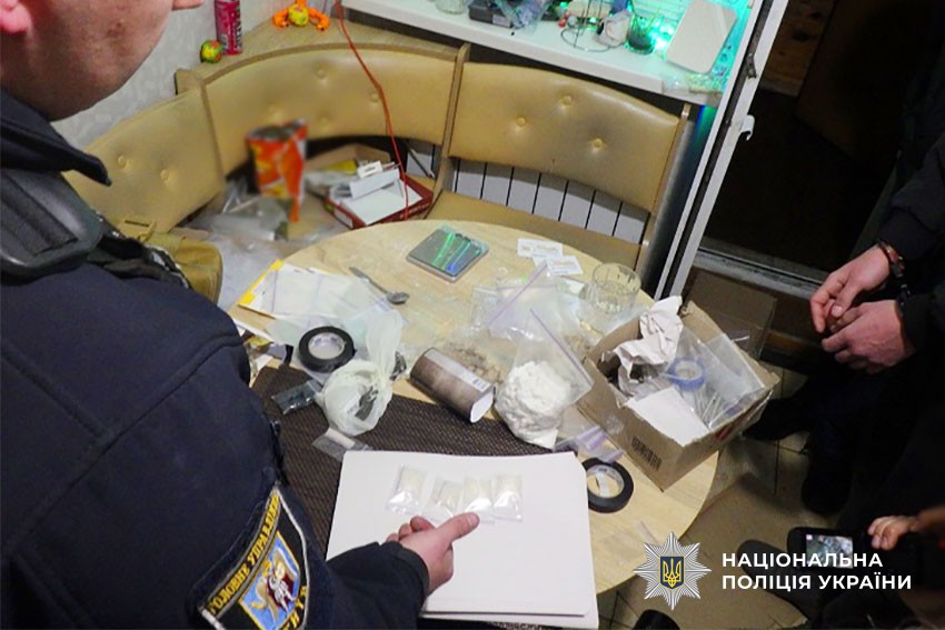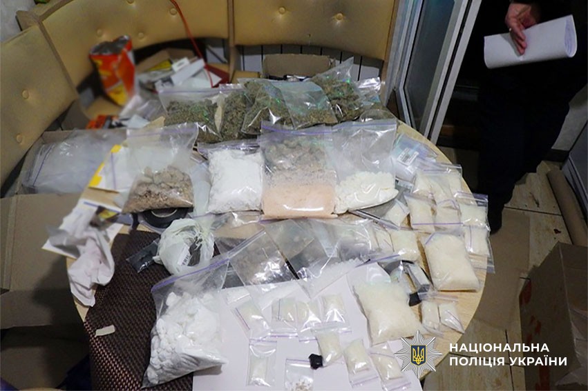 «У ході подальшого невідкладного обшуку за місцем мешкання зловмисника ми вилучили понад 2,5 кілограми заборонених речовин, серед яких: амфетамін, «Альфа-PVP», мефедрон, канабіс, а також електронні ваги й інші речові докази. Все вилучене ми направили на експертизу. Порушника затримано в порядку статті 208 Кримінального процесуального кодексу України. Загальна вартість виявлених психотропних речовин та наркотичних засобів за цінами «чорного ринку» може складати понад 500 000 гривень».