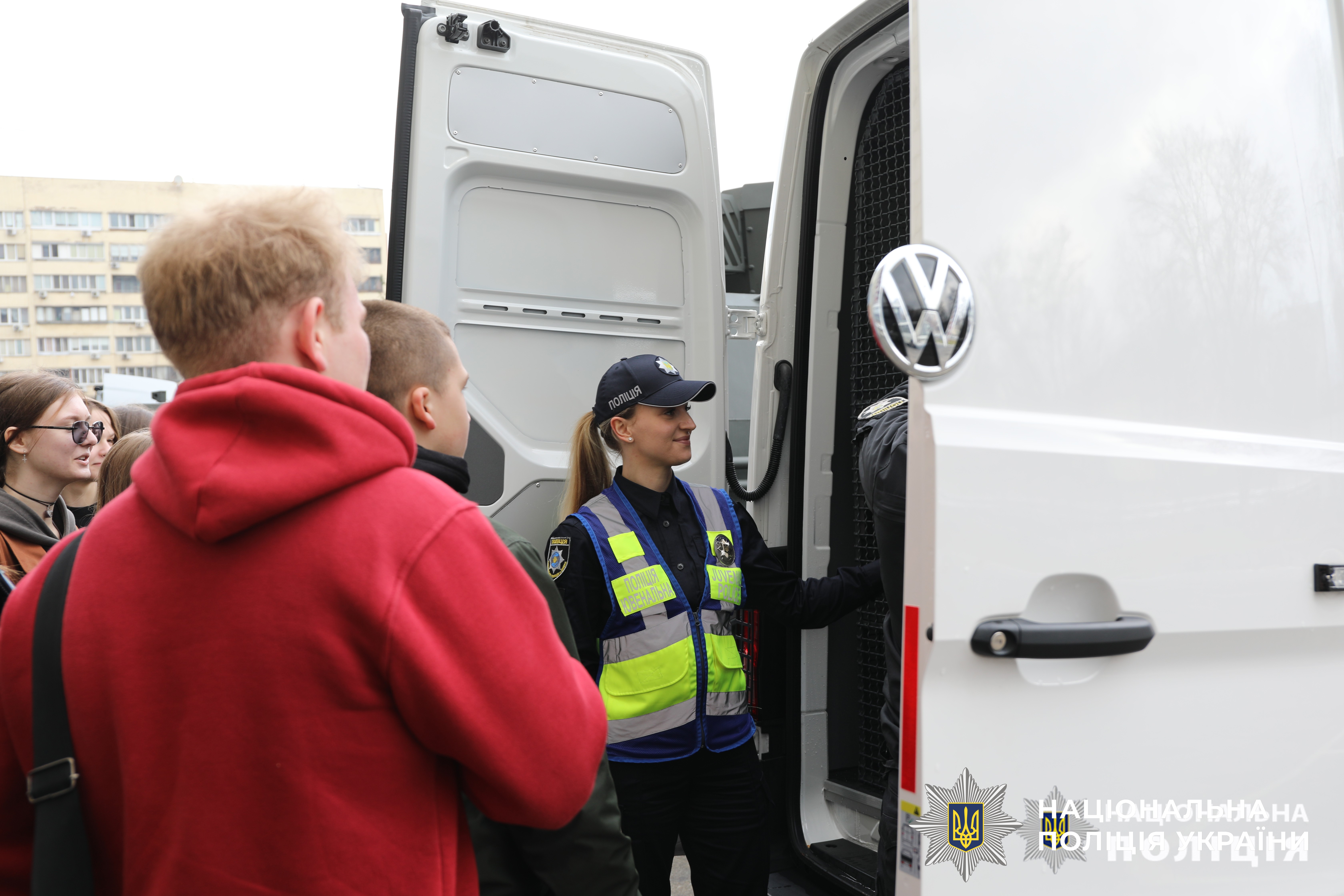В рамках профорієнтації та відбору кандидатів для вступу до закладів вищої освіти МВС, працівники кадрового забезпечення столичного главку організували для випускників зустріч, де вони ознайомилися з технікою та спецзасобами, якими поліцейські користуються на службі.