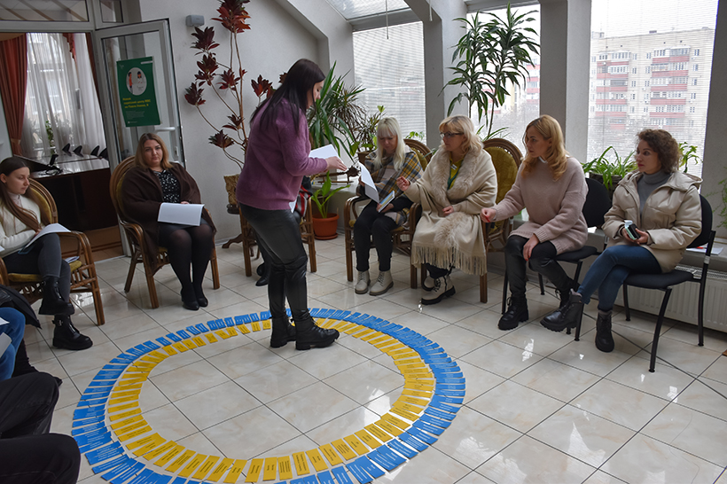 Учасники визначили та проговорили не тільки про особисті ресурси та засоби управління стресогенними чинниками, але й знайшли спільний для всіх символ внутрішнього балансу, який разом відтворили на папері, виконавши вправу «Спільний малюнок».