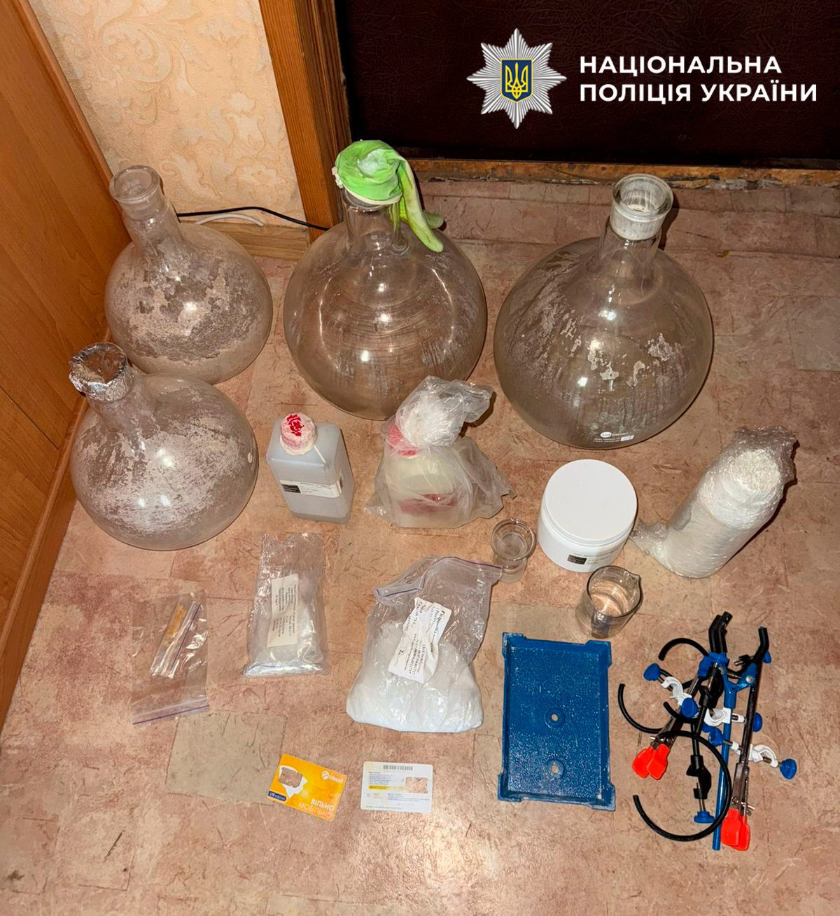 Під час обшуку за місцем проживання порушниці поліцейські вилучили «товар», зіп-пакети для фасування, а також значну кількість хімічних речовин, що використовуються для виготовлення наркотиків.