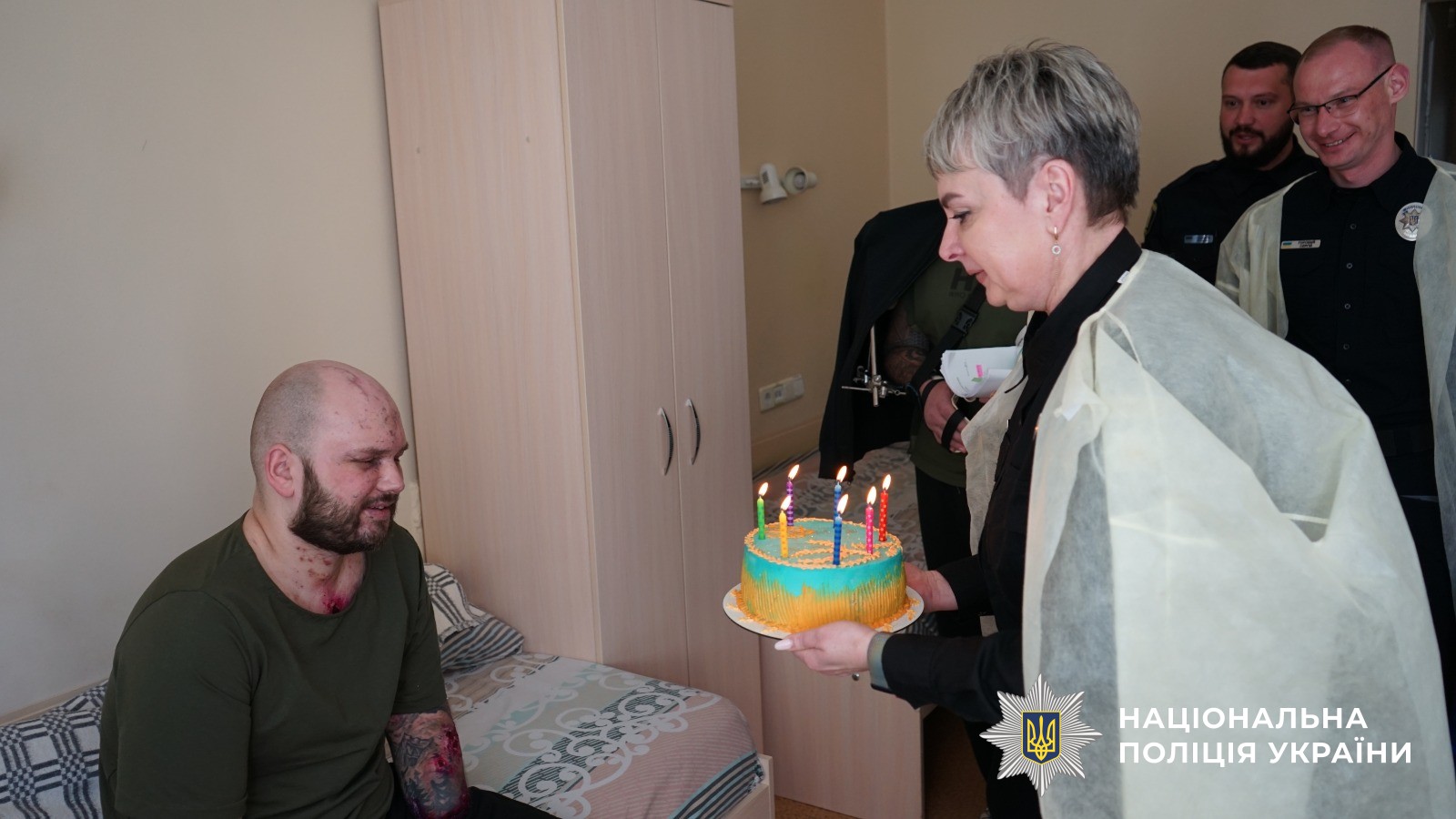Також поліцейські привітали воїна стрілецького полку Володимира Кирюхіна з днем народження, влаштувавши йому приємний солодкий сюрприз.