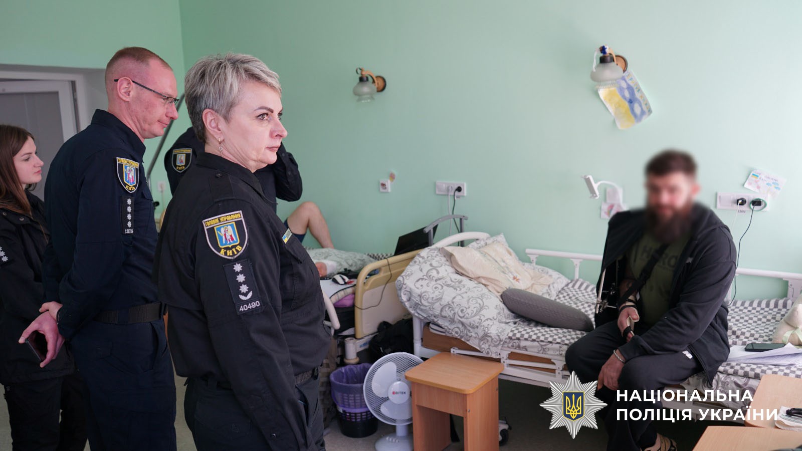 Начальниця управління кадрового забезпечення поліції Києва Вікторія Азарова, а також помічник начальника главку з ветеранських питань Руслан Губанов відвідали постраждалих колег у лікарняному закладі та подякували їм за мужність.