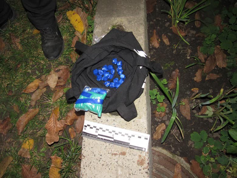 час поверхневої перевірки правоохоронці виявили в порушника 34 згортки з психотропною речовиною — солями PVP, які він планував збути шляхом закладок. Окрім цього поблизу місця затримання, поліцейські виявили схованку з наркотиками, яку чоловік вже встиг зробити.