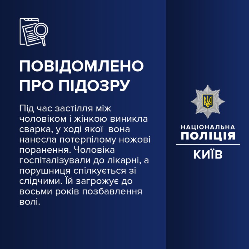 Столичні слідчі повідомили про підозру жінці, яка тяжко поранила знайомого