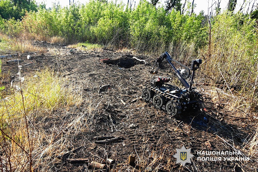 Столичні вибухотехніки за допомогою робота знищили ворожі протипіхотні міни в одному з селищ Харківщини
