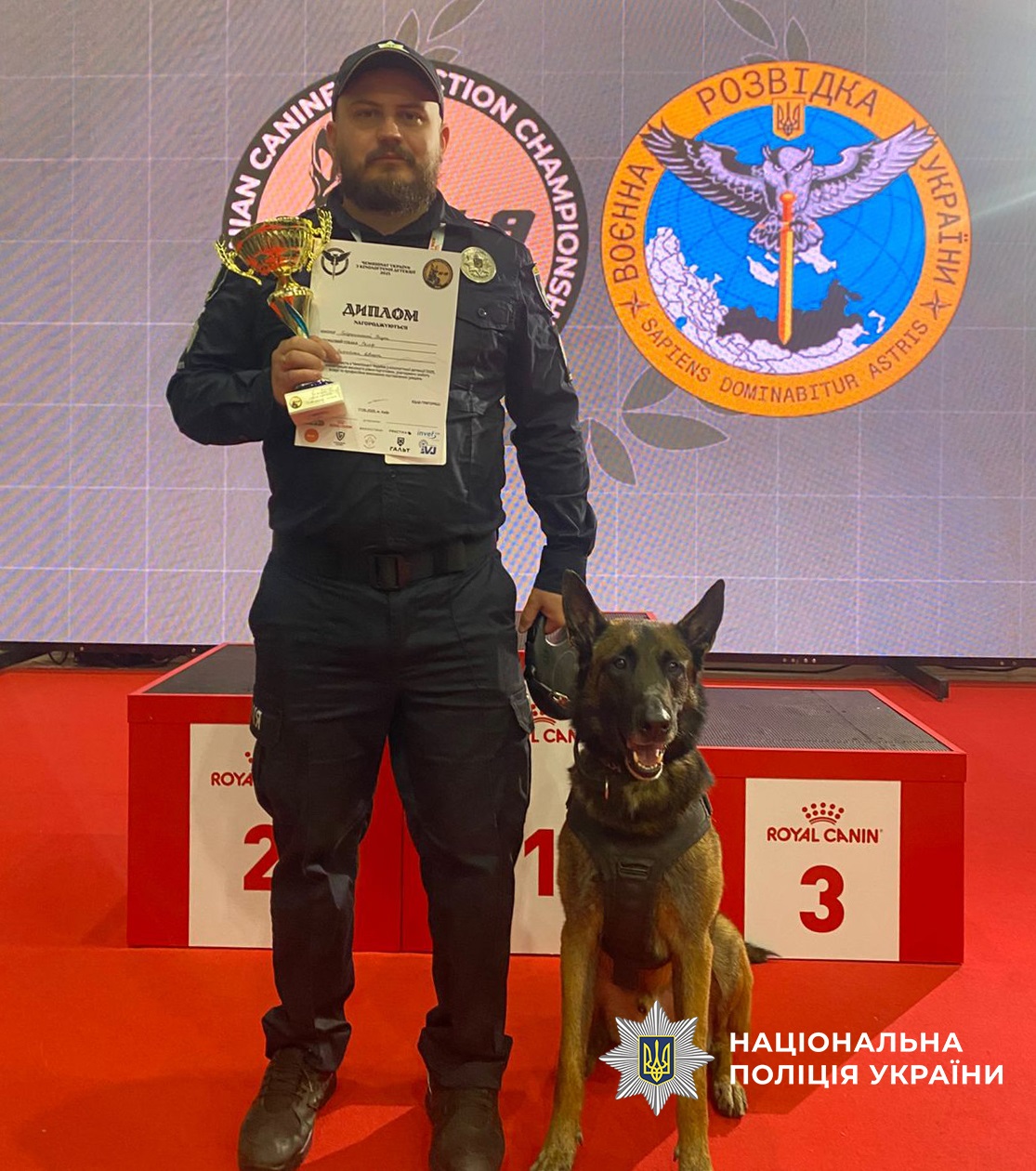 Так, бельгійська вівчарка малінуа Ральф, який несе службу у кінологічному центрі поліції Києва вже 6 років та спеціалізується на пошуку вибухових речовин та зброї, показав гарний результат з пошуку вибухівки та допоміг команді Нацполіції вибороти 2 командне місце на Чемпіонаті.