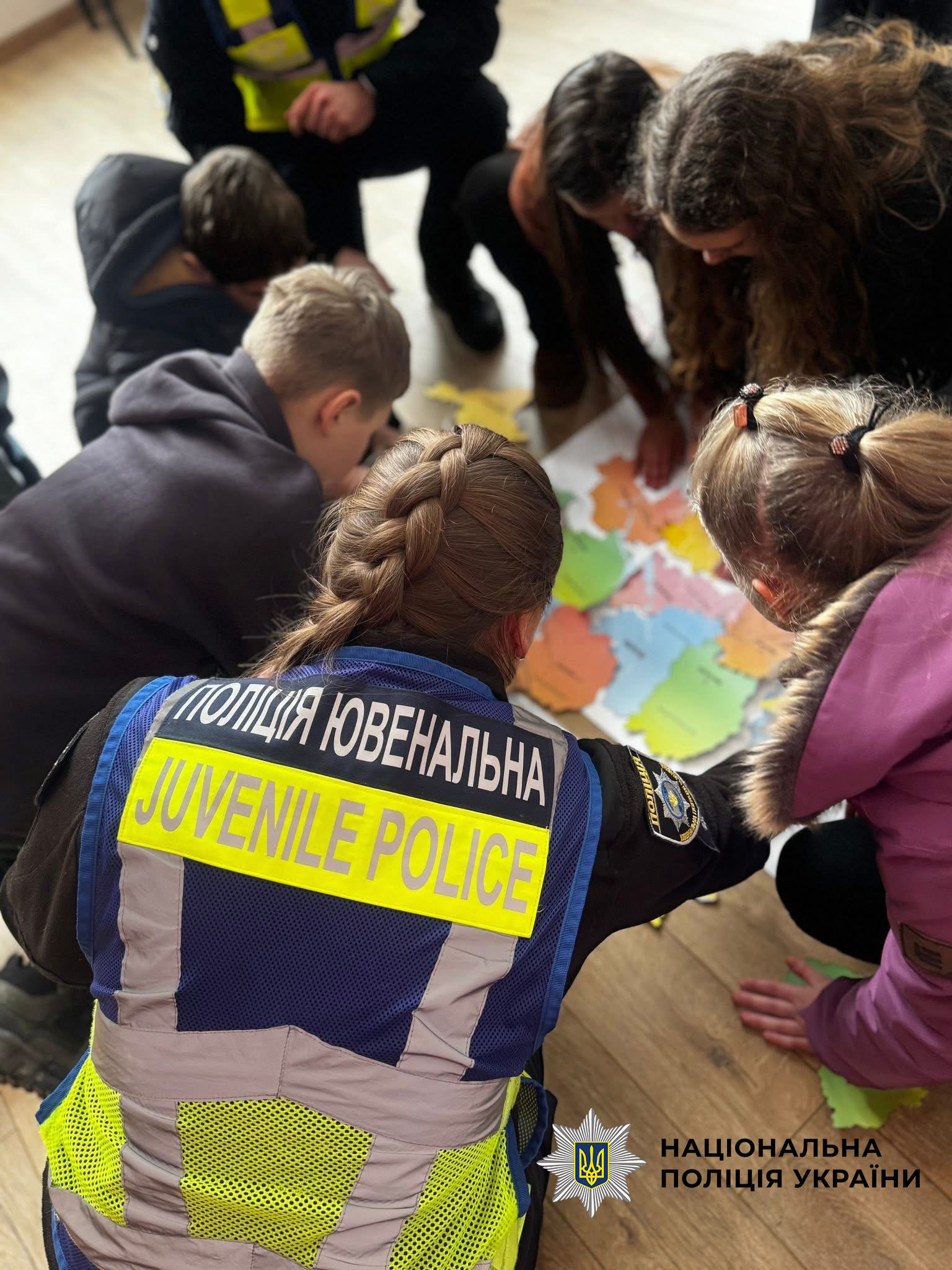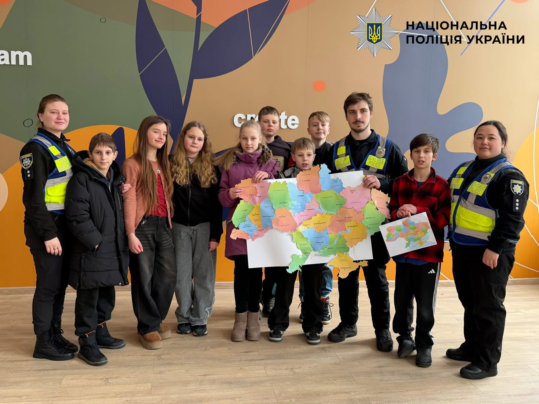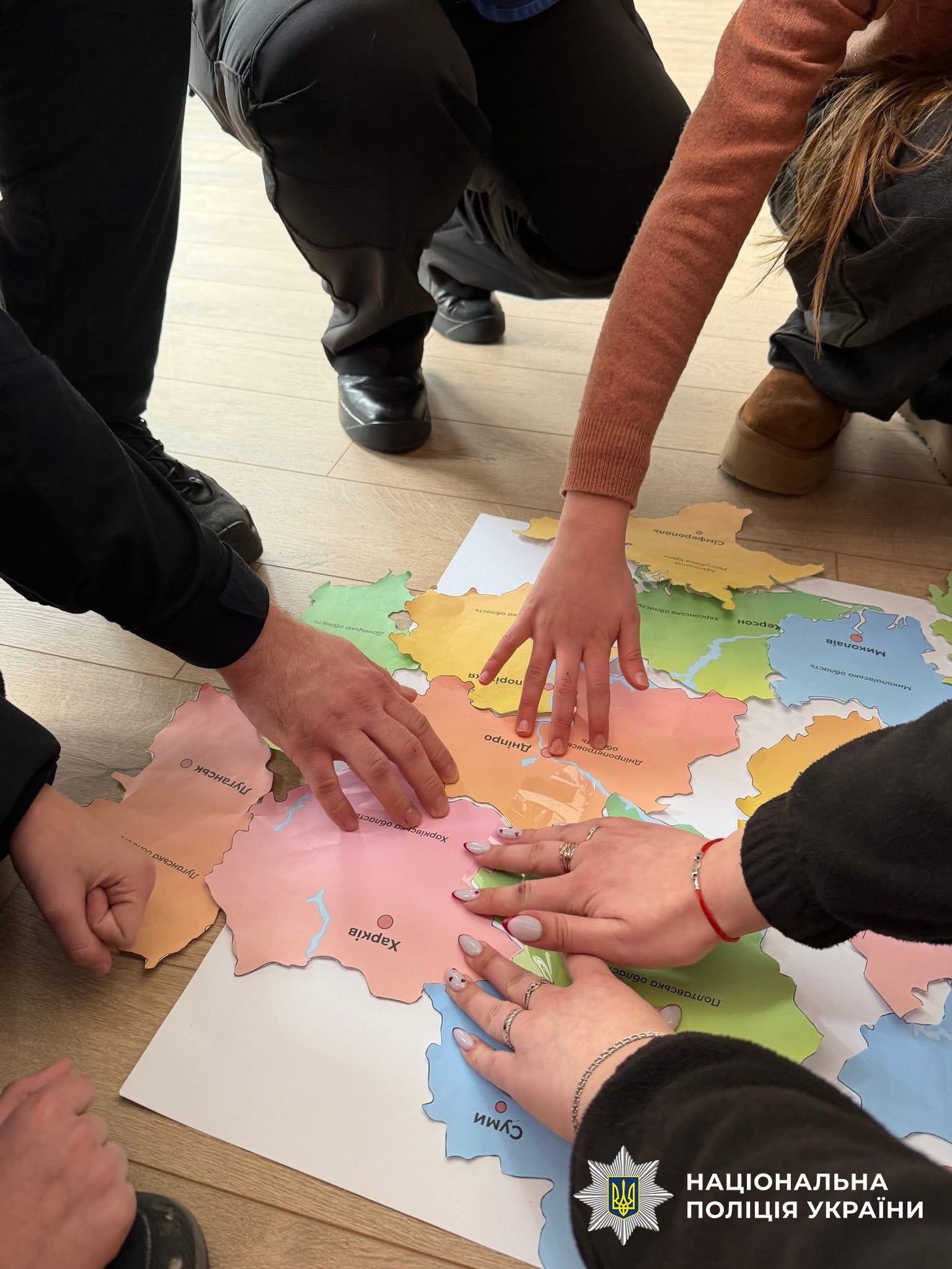 Разом із учнями правоохоронці створювали символічну карту України. Кожна деталь, яку додавали діти, ставала частиною великої мозаїки нашої держави. Це не просто творчість, а усвідомлення того, що кожен із нас – важлива частинка єдиної країни.