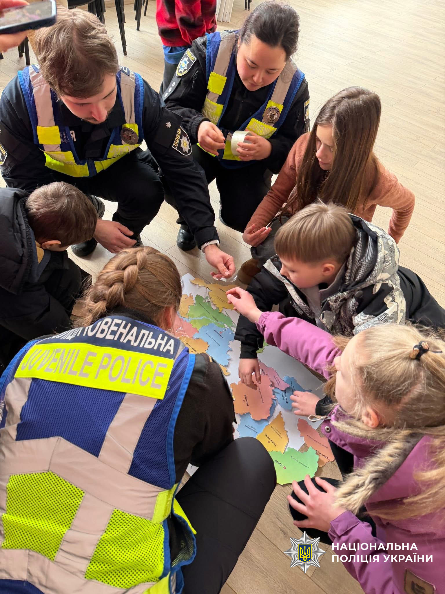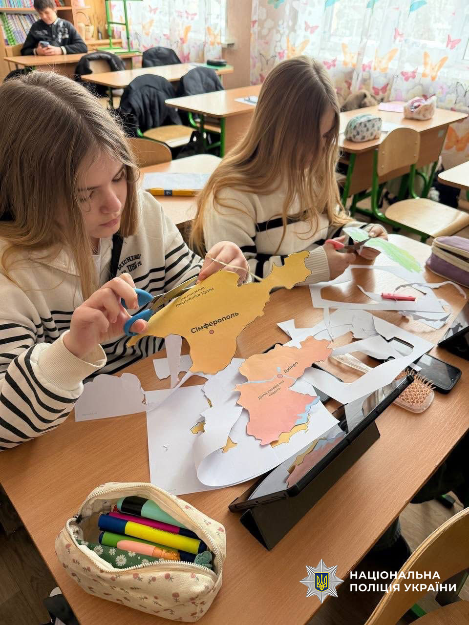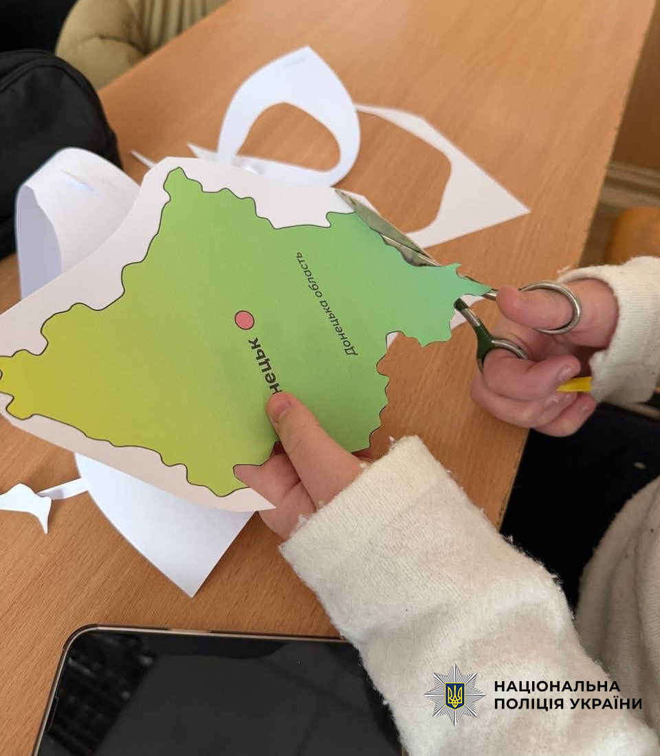 Разом із учнями правоохоронці створювали символічну карту України. Кожна деталь, яку додавали діти, ставала частиною великої мозаїки нашої держави. Це не просто творчість, а усвідомлення того, що кожен із нас – важлива частинка єдиної країни.