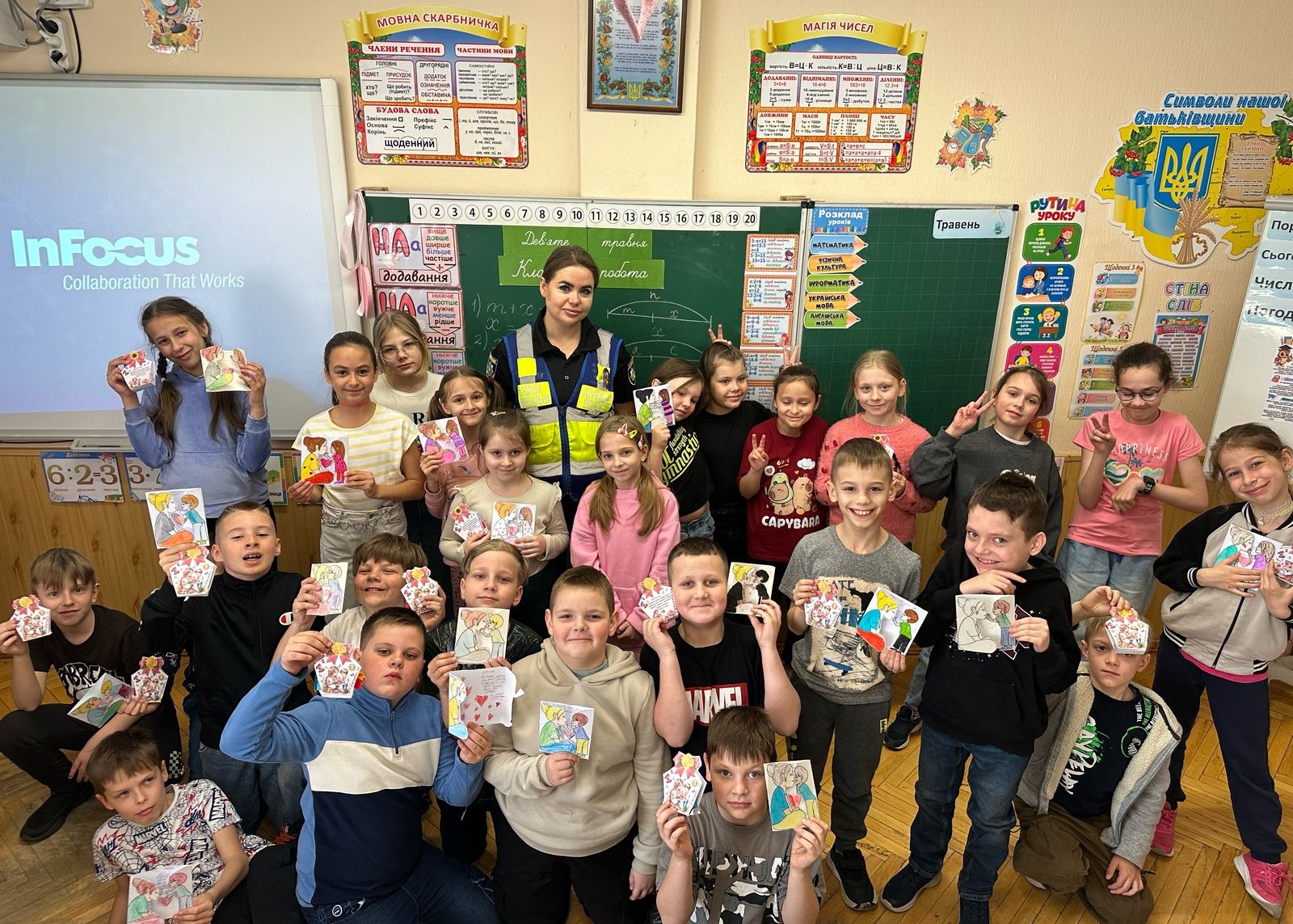 До цієї зворушливої ініціативи долучилася інспектор ювенальної превенції Оболонського управління поліції, яка разом із дітьми поринула у світ яскравих фарб, ніжних побажань та щирих слів подяки.