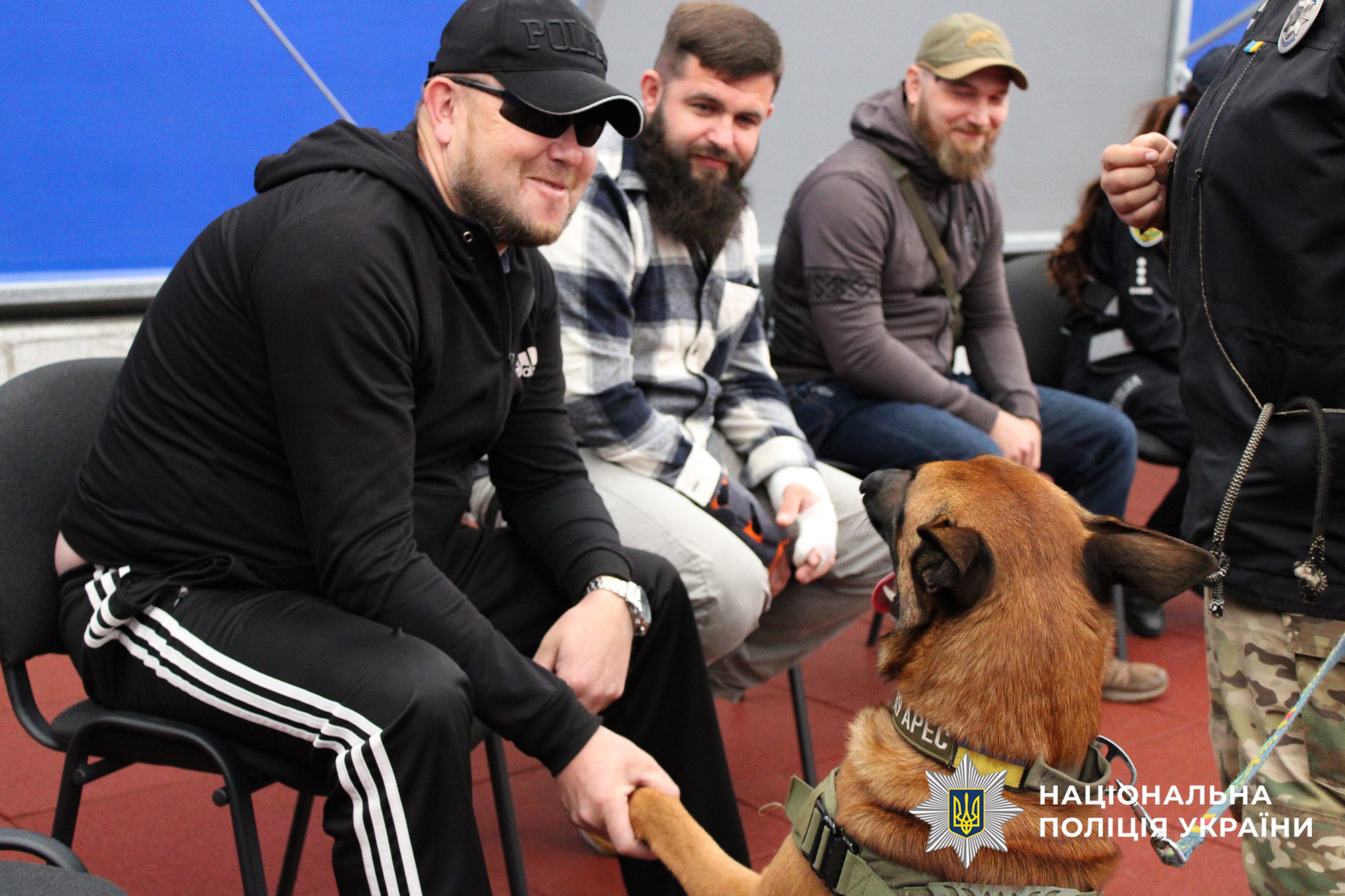 За ініціативи помічників начальників з ветеранських питань поліції Києва та Київської області Руслана Губанова та Віктора Мазніченко, а також за сприяння начальника кінологічного центру поліції Київської області Максима Піщанського на території кінологічного центру поліції Київщини відбулась зустріч-знайомство поліцейських-ветеранів столиці та області з службовими песиками.