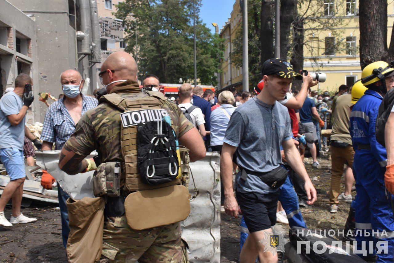 Однією з цілей російської армії став дитячий медичний заклад «Охматдит», де проходили лікування діти з усієї України. Внаслідок атаки російських військових загинули двоє дорослих: лікар і відвідувач медзакладу. Ще 30 травмовані, з них 10 дітей. До ліквідації наслідків на місці обстрілу було задіяно більше 700 поліцейських, зокрема, працівники Шевченківського управління поліції, кінологи, спецпризначенці полків № 1 та № 2, патрульні поліцейські, слідчі, оперативники, які разом із рятувальниками, нацгвардійцями та мешканцями міста розбирали завали, рятували людей, а також правоохоронці документували злочин держави-агресора.